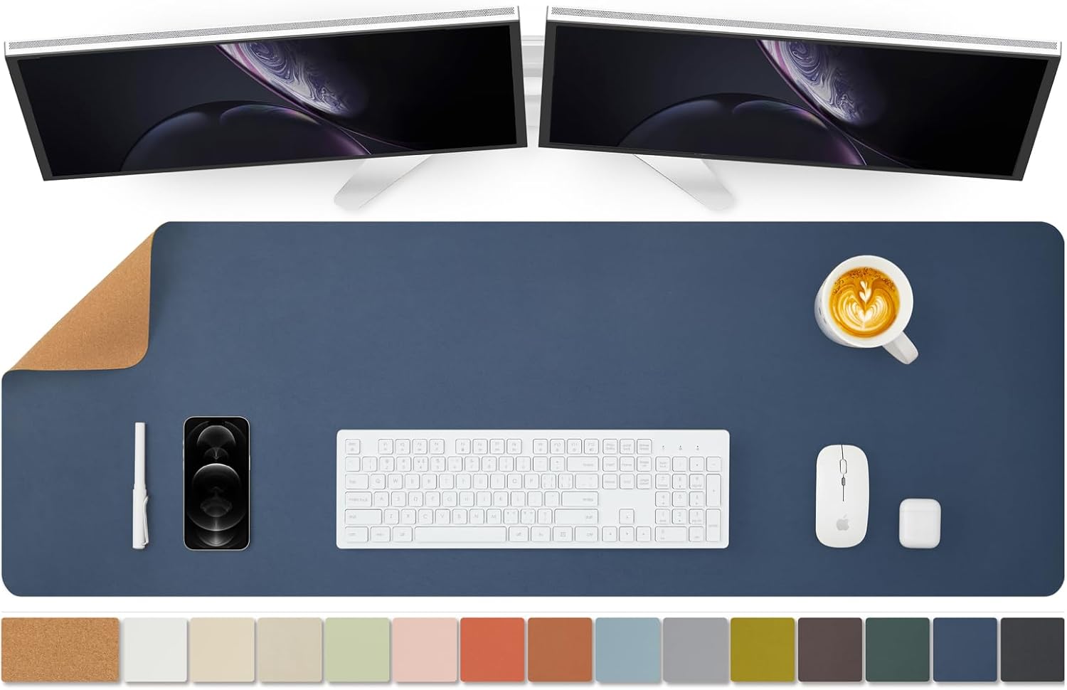 Large Cork Desk Mat - 47.2"x 17" Desk Pad for Office and Home - Ideal for Large Mouse Pad and Desk Mats on Top of Desks(Dark Blue)