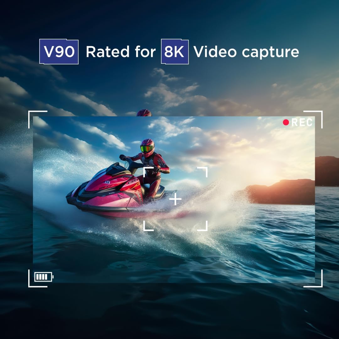 - V90 rated for smooth uninterrupted 8K resolution and 4K60 video capture - no dropped frames