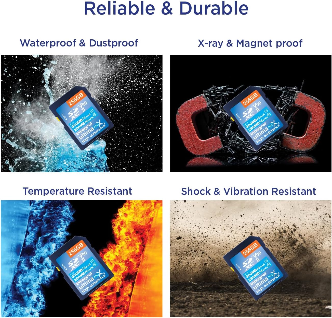 Integral 256GB UHS-II SD Card V90 Up to 300MBs Read and 280MBs Write Speed 1866X SDHC Professional High Speed Memory Card