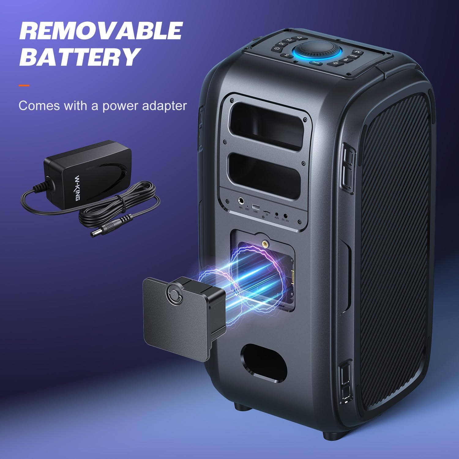- REMOVABLE BATTERY & CHARGER INCLUDED: The T9 PRO has a removable rechargeable battery and a charger is included – no need for an extra purchase. This party speaker boasts a sturdy structure, ergonomic handles, and anti-slip pads for a comfortable hold, body protection, and extended lifespan. It's your ultimate audio companion, ideal for gifting on birthdays, Christmas, Thanksgiving, weddings, speeches, and more. Choose our T9 PRO Bluetooth speakers and let music accompany you every moment!