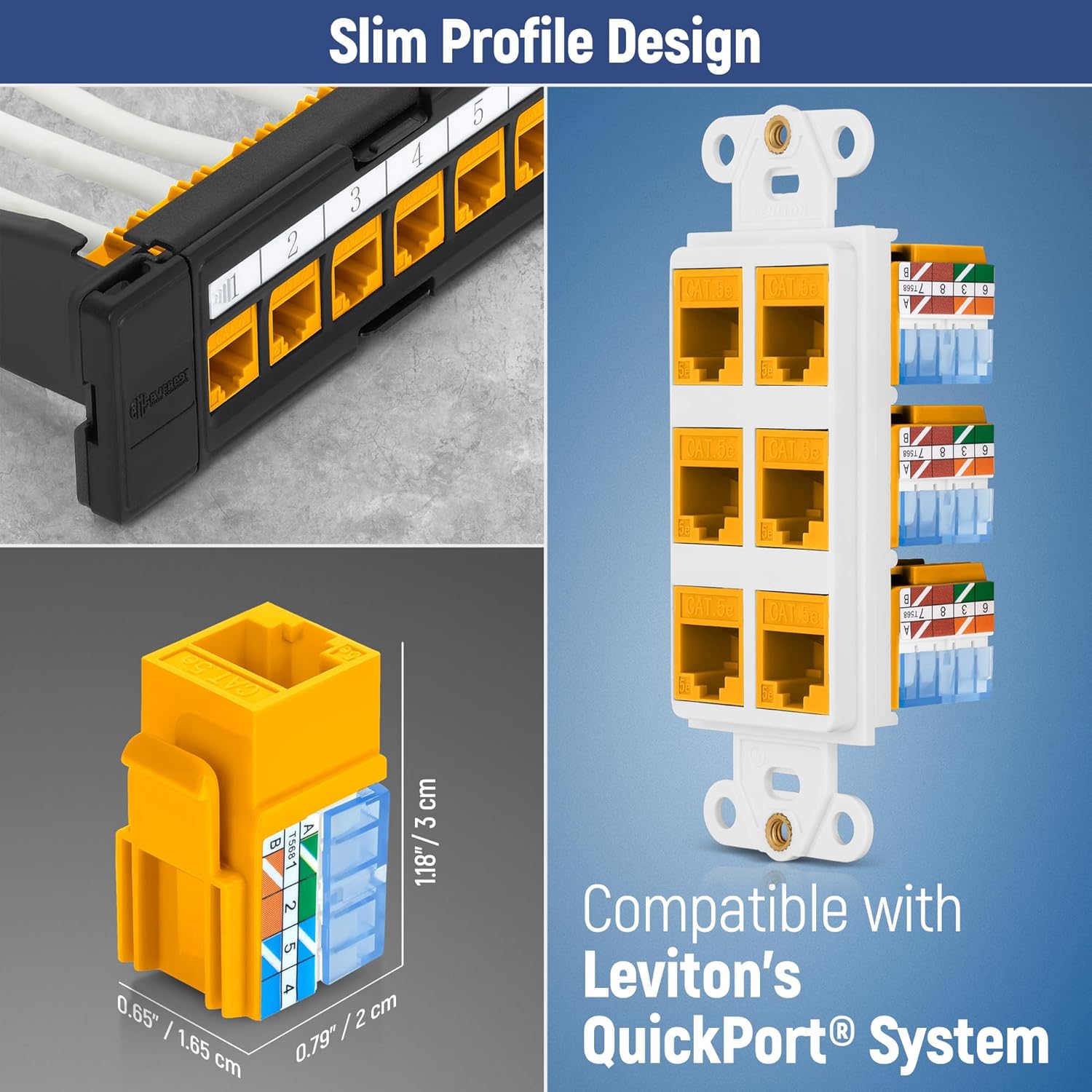 - Slim Profile Design - Can be used with a Keystone patch panel, wall plate, or surface mount box with standard or slim keystone blank openings. compatible with Leviton QuickPort System and slim Decora style wall plates