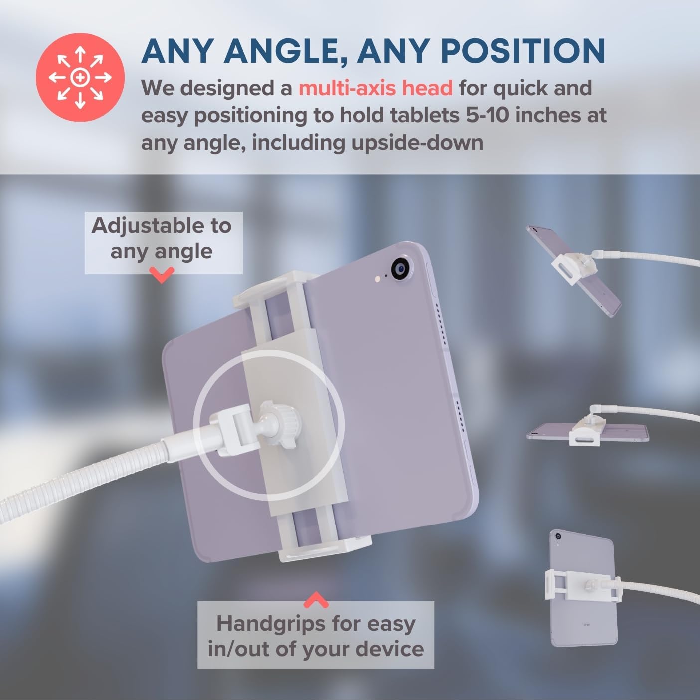 - UNPARALLELED DESIGN: Discover the excellence with the new LEVO, featuring a proprietary multi-axis head for swift and precise positioning of yaw, tilt, and roll, ensuring optimal tablet placement at any angle, even upside-down. Elevate your experience with height adjustability ranging from 30 to 60 inches, offering versatility for various settings. The high-quality gooseneck, uniquely crafted by LEVO, maintains its shape flawlessly after bending and minimizes sag.