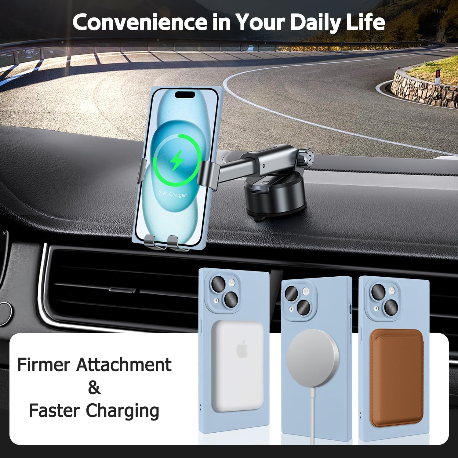 - [Compatible with Magsafe] Magnetic case for iPhone 15 has 48 built-in powerful magnets to ensure alignment and fast attachment, providing stronger magnetism and won't fall off. This 15 magnetic case is compatible with wireless charging, as well as car mounts, wallets, power bank and ring holders, meanwhile it doesn’t interfering the use of the camera