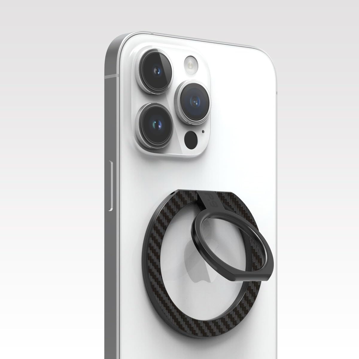 PureGear Magnetic Phone Grip Ring Stand, Magnetic Phone Ring Holder for MagSafe iPhone 16, 16 Pro, 16 Plus, 16 Pro Max, 15, 15 Plus, 14, 14 Pro, 14 Pro Max, 13, 12, Adjustable Kickstand(Carbon Fiber)