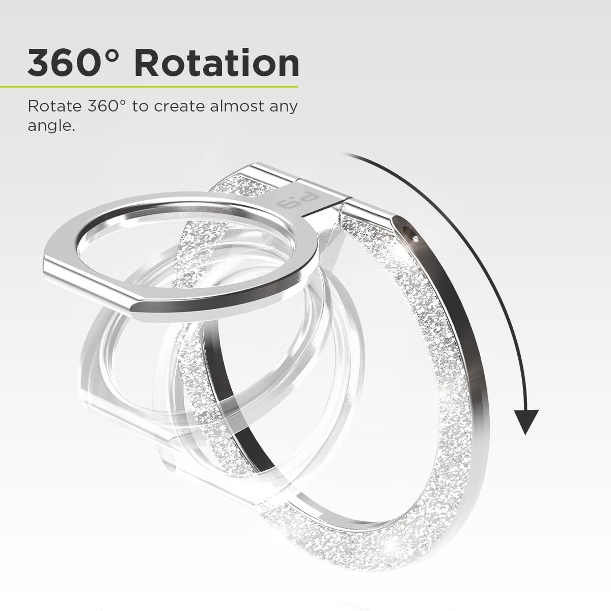 PureGear Magnetic Phone Grip Ring Stand, Magnetic Phone Ring Holder for MagSafe iPhone 16, 16 Pro, 16 Plus, 16 Pro Max, 15, 15 Plus, 14, 14 Pro, 14 Pro Max, 13, 12 Adjustable Kickstand(Silver Glitter)