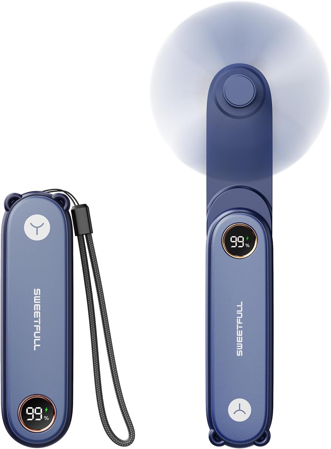 SWEETFULL Portable Handheld Mini Fan with LED Display, 3-in-1 Personal Foldable USB Rechargeable Hand Held Fan & Flashlight for Travel, Lash Eyelash, Cute Small Pocket for Women, Girls
