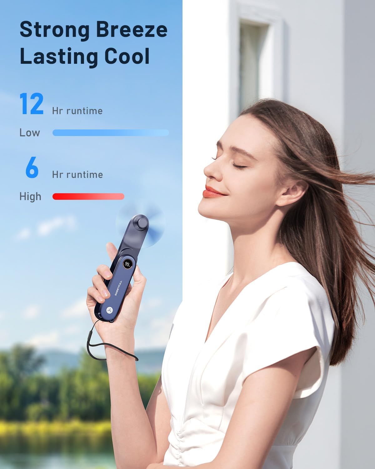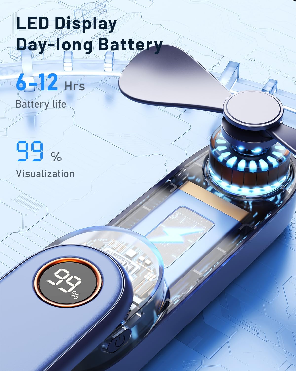 - [6-12 Running Hrs & LED Display] This small fan features a rechargeable battery, offering extended runtime and real-time battery level monitoring through its LED display —an ideal gift for girls, moms, and women.