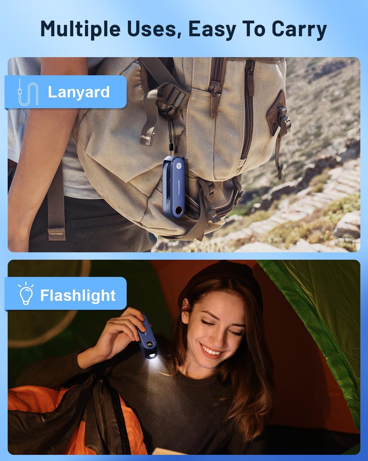 - [Emergency Flashlight Function] It doubles as a convenient flashlight(press twice to activate.), ensuring preparedness for nighttime adventures or unexpected situations—a must-have hand fan for travel and outdoor activities.