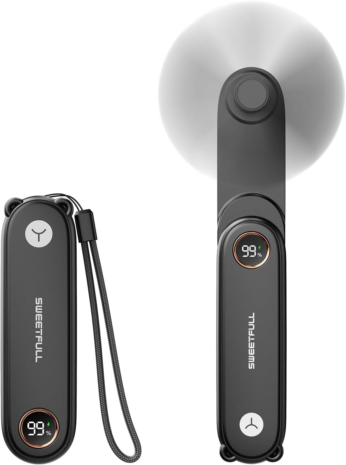 SWEETFULL Portable Handheld Mini Fan with LED Display, 3-in-1 Personal Foldable USB Rechargeable Hand Held Fan & Flashlight for Travel, Lash Eyelash, Cute Small Pocket for Women, Girls