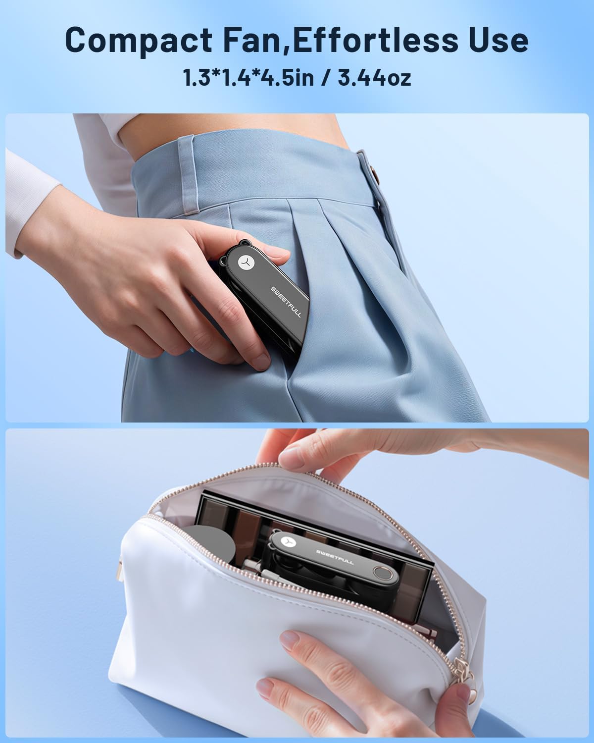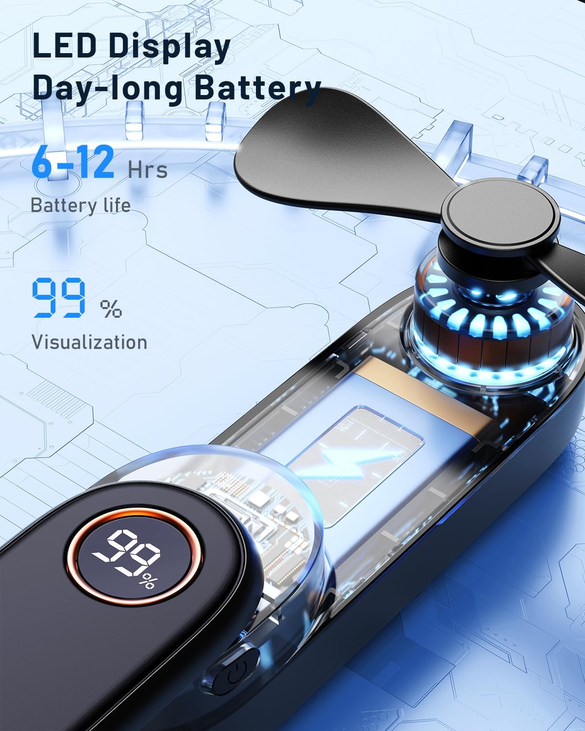 - [6-12 Running Hrs & LED Display] This small fan features a rechargeable battery, offering extended runtime and real-time battery level monitoring through its LED display —an ideal gift for girls, moms, and women.