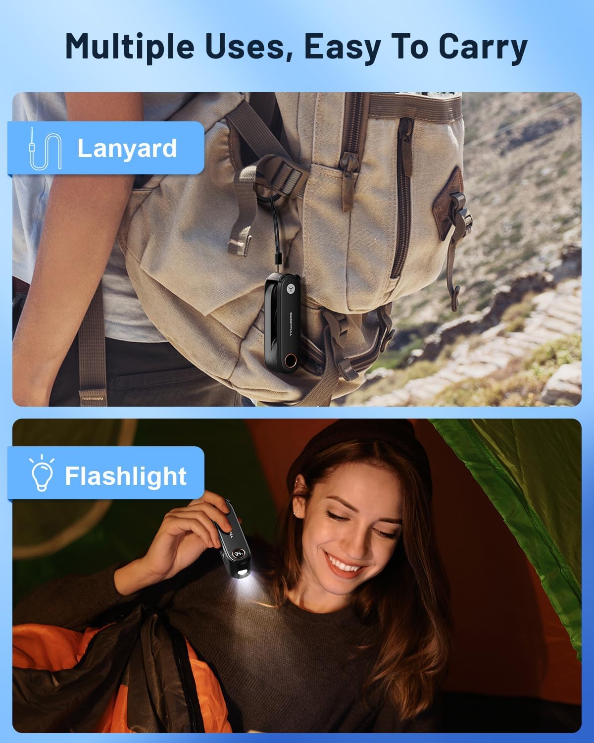 - [Emergency Flashlight Function] It doubles as a convenient flashlight(press twice to activate.), ensuring preparedness for nighttime adventures or unexpected situations—a must-have hand fan for travel and outdoor activities.