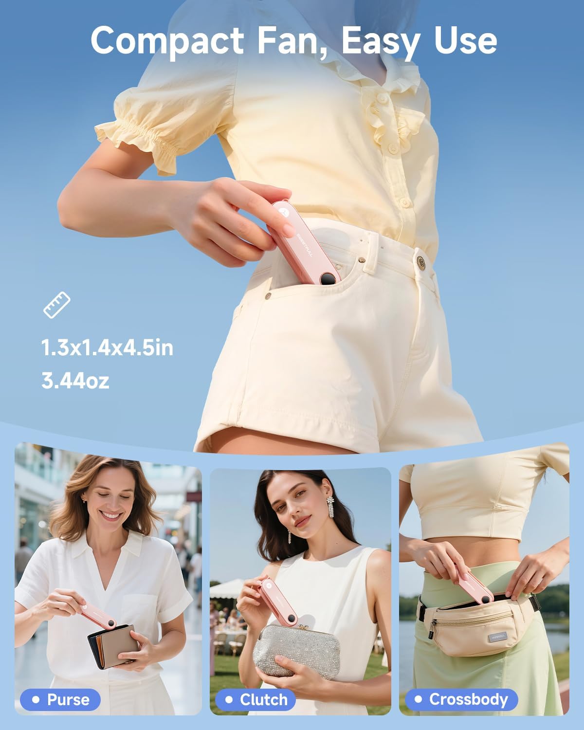 - [Foldable & Portable] The nail-friendly opening, 360° foldable design allows it to easily slip into your pocket or hang around your hand (lanyard included), making it suitable as a handheld personal fan and a mini cooling accessory.