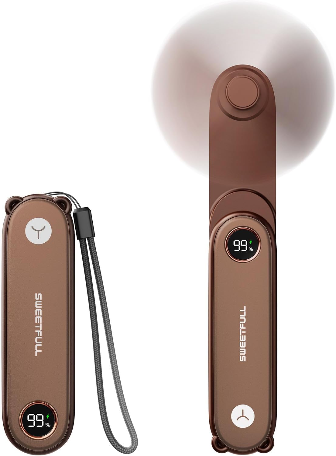 SWEETFULL Portable Handheld Mini Fan with LED Display, 3-in-1 Personal Foldable USB Rechargeable Hand Held Fan & Flashlight for Travel, Lash Eyelash, Cute Small Pocket for Women, Girls