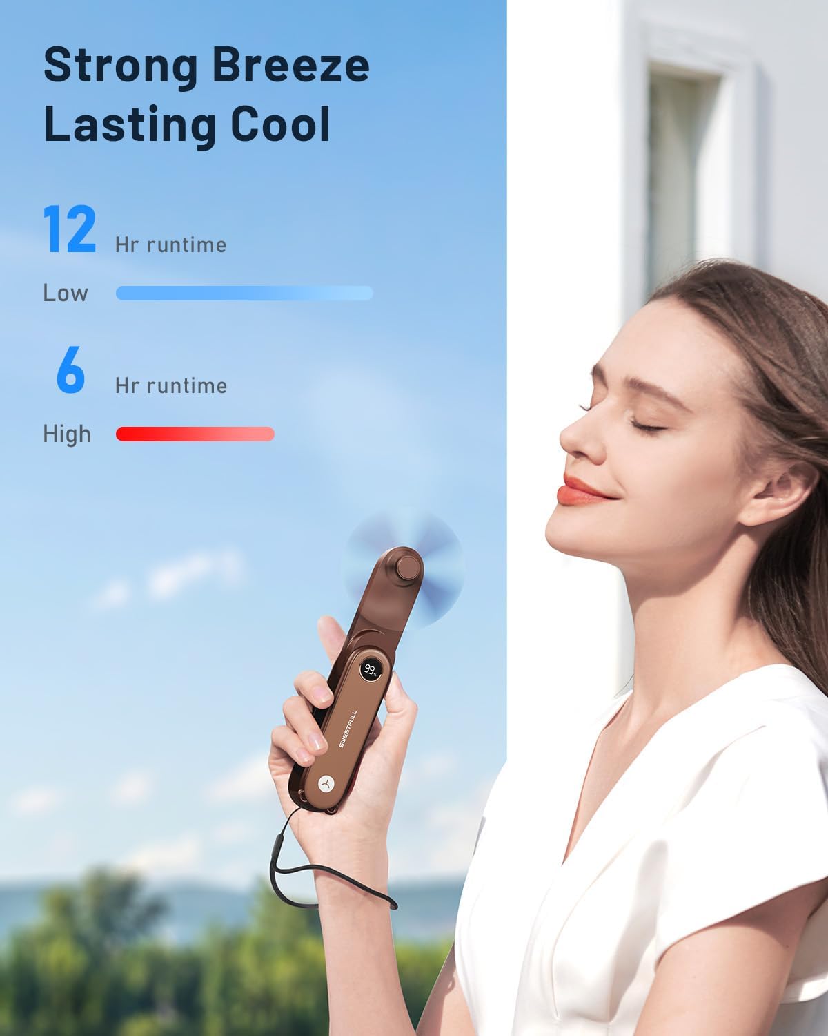 - [6-12 Running Hrs & LED Display] This small fan features a rechargeable battery, offering extended runtime and real-time battery level monitoring through its LED display —an ideal gift for girls, moms, and women.