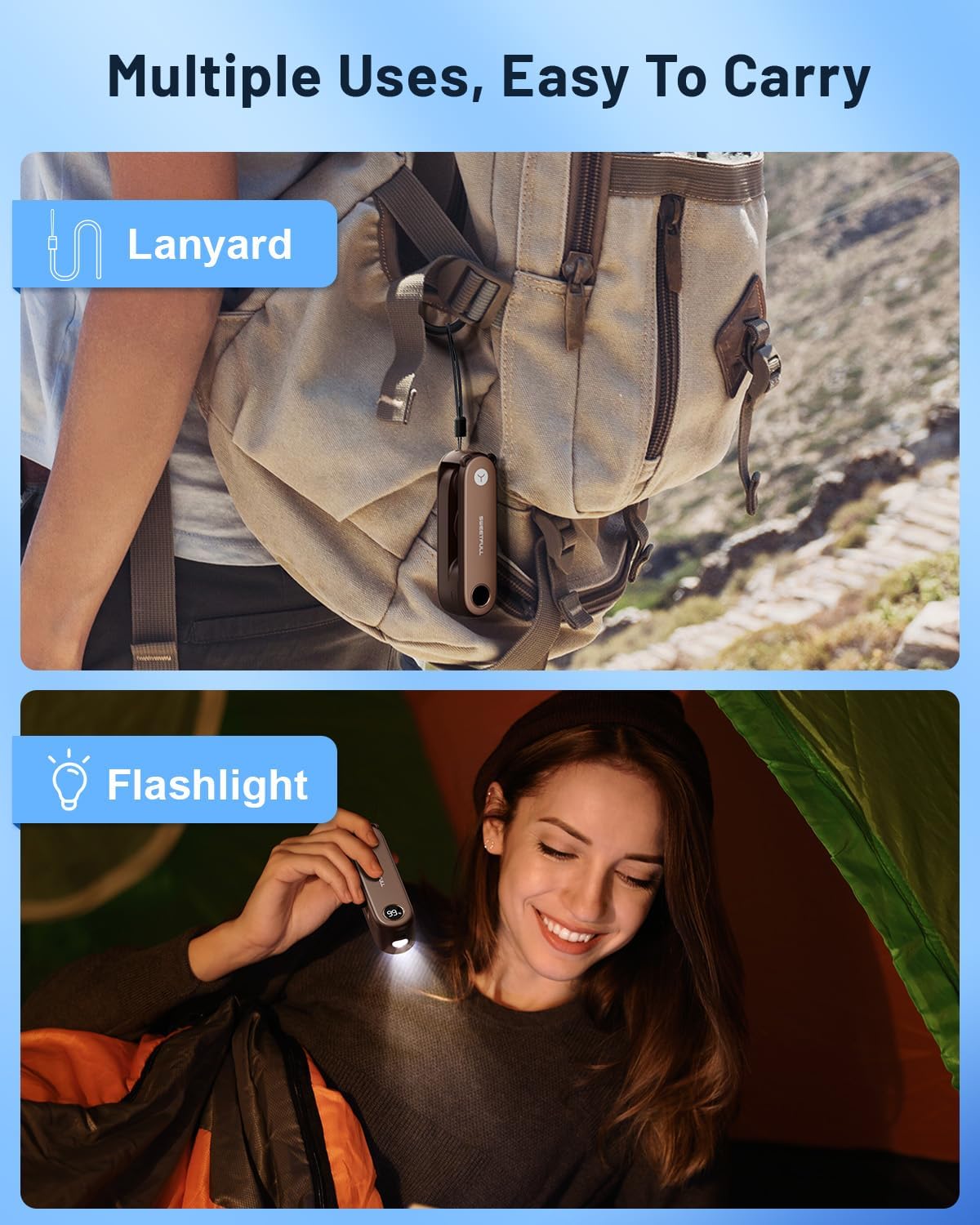 - [Emergency Flashlight Function] It doubles as a convenient flashlight(press twice to activate.), ensuring preparedness for nighttime adventures or unexpected situations—a must-have hand fan for travel and outdoor activities.