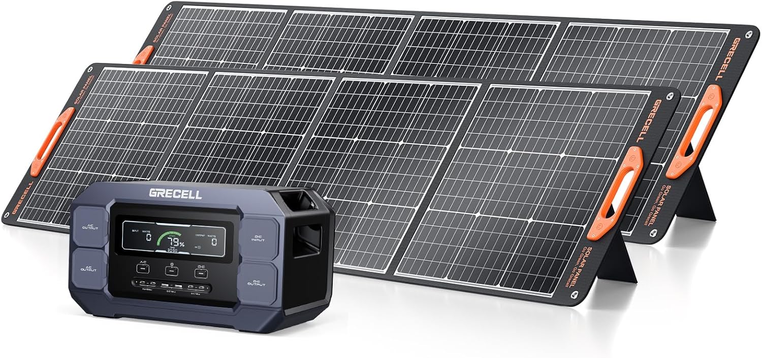 Portable Power Station 2200W GRECELL with Solar Panel 2×200W, LiFePO4 Battery, Fast Charging, Solar Generator for Camping Home Backup RV