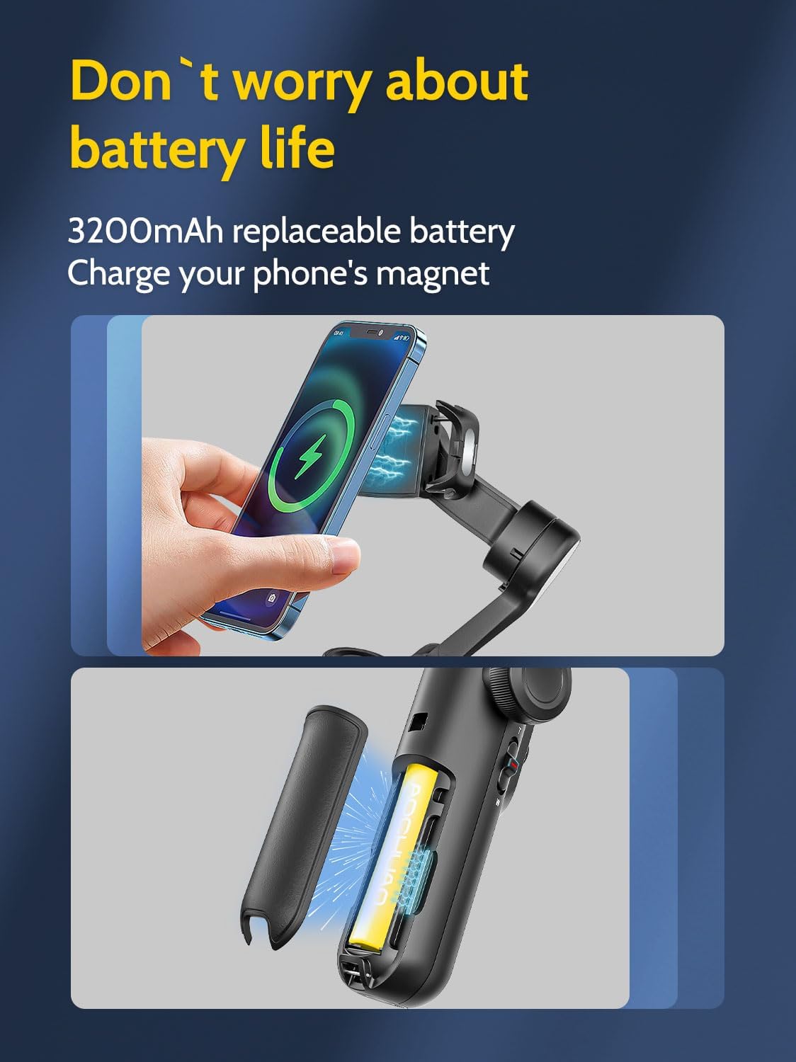 - [Create your Own Hitchcock Film like a Pro] With our innovative Focus Switch and Zoom Slide, this phone gimbal stabilizer empowers you to shoot your own Hitchcock movies without learning complicated filmmaking skills. Adjust focus speed to your footage synchronously and smoothly. Also these 3 brushless motors' power of Smart X Pro increases more than other branded gimbals. Longer Runtime with 3200mAh big-capacity battery within 12 hours.