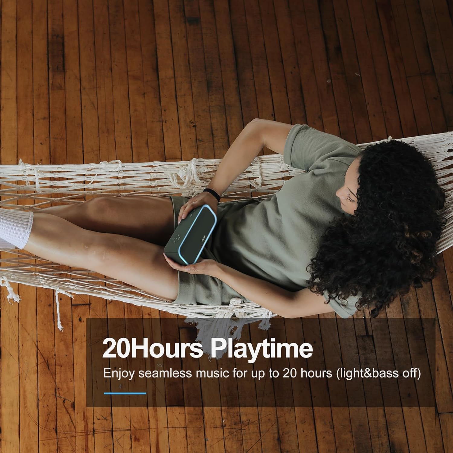 DOSS SoundBox Pro Bluetooth Speaker with 20W Stereo Sound, Active Extra Bass, IPX6 Waterproof, TWS Pairing, Multi-Colors Lights, 20H Playtime, Portable for Outdoor-Cypress Green