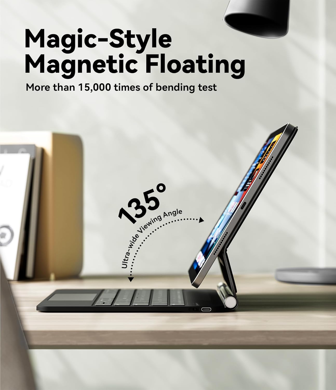 - Quick-Set Magnetic Stand: Featuring a strong magnetic matrix of 31 magnets that provide up to 2600GS of holding power, the Quick-Set Magnetic Stand seamlessly integrates with your iPad A16 11th gen, allowing you to easily open the floating cantilever stand and adjust it to the perfect angle for typing or browsing.