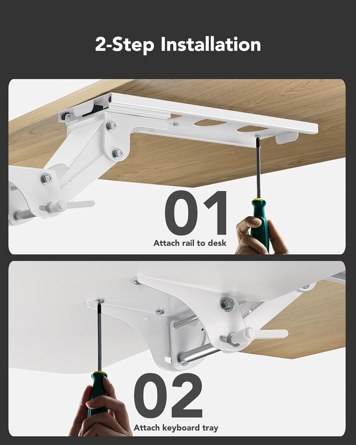 - Large & Perfect Size - Full size keyboard drawer with a 25” x 9.84” , surface fit all sizes of the keyboard, mouse, and all your extra knick-knacks .We also included a wrist rest to improve wrist comfort. (Item weight: 10lbs)