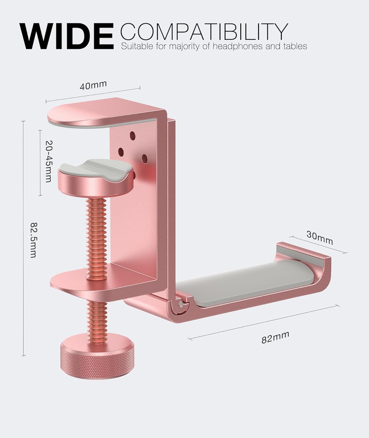 - Under Desk Headphone Hook – Universal Fit for Most Desks: This under desk headphone stand clamps securely to desktops from 5mm up to 50mm thick. Compatible with most gaming desks, office tables, and shelves, it’s a universal mount for convenient, space-saving storage.