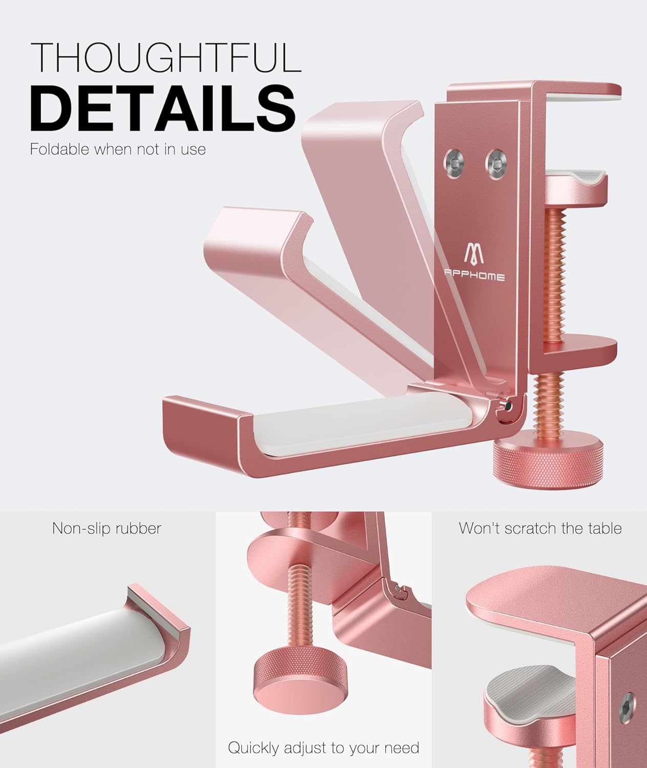 Foldable Headphone Stand and Hook – Aluminum Headset Holder Clamp Mount Under Desk, Universal Fit for Gaming Headphones, Space-Saving Hanger Organizer