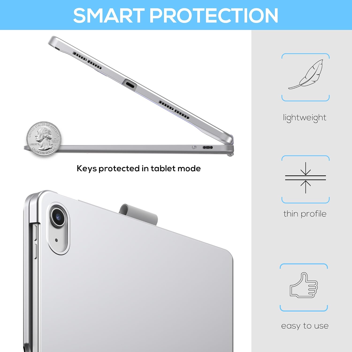 - Smart Features - Premium hard-shell design protects all sides of your iPad; auto sleep/wake initiates when keyboard case is opened & closed to conserve battery life; holder for Apple Pencil so it won't get lost or in the way.