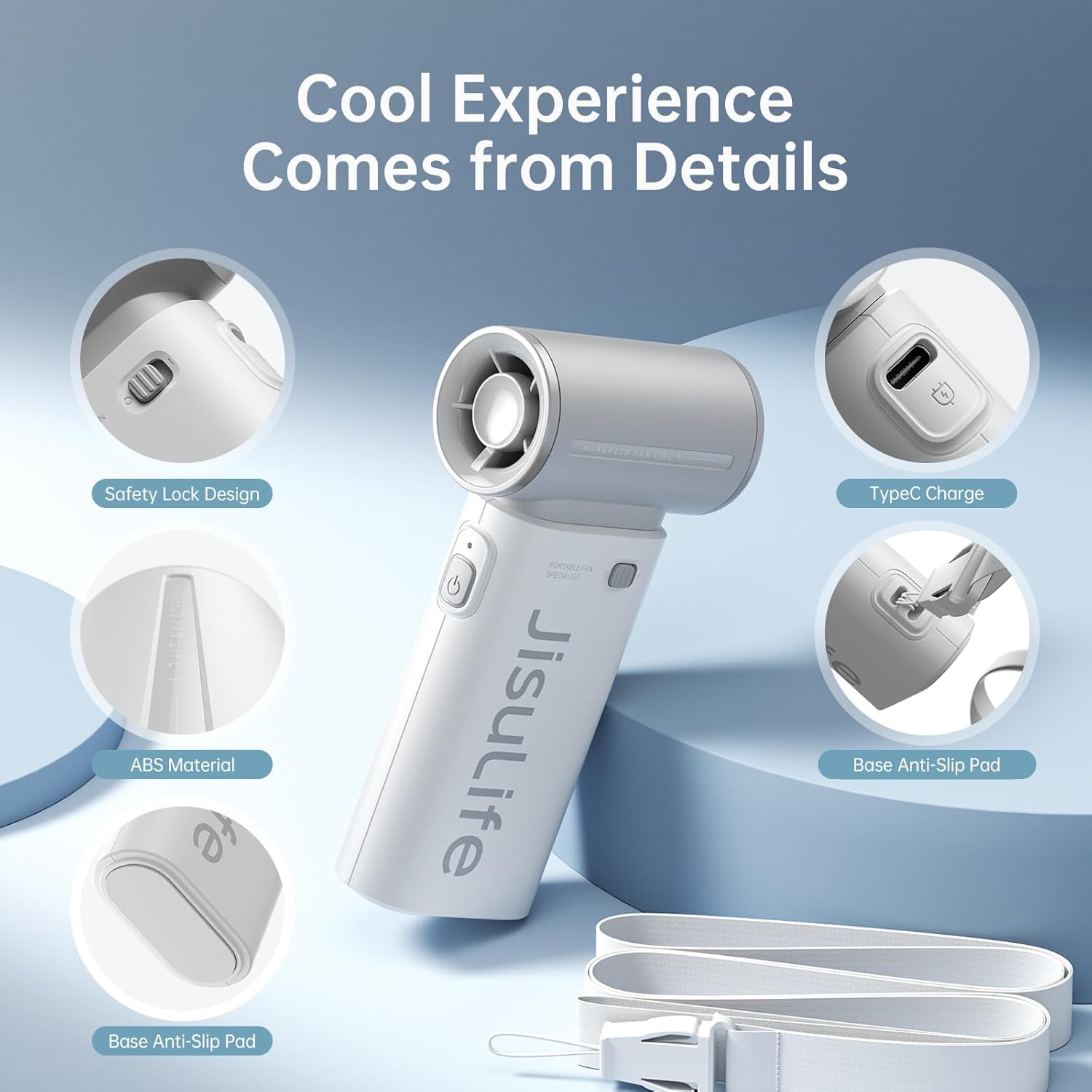 - Powerful Wind, Fast Cooling: JISULIFE powerful portable turbo fan adopts advanced 9-blade design, with high-speed three-phase brushless motor, providing a maximum wind speed of up to 10m/s. 40000 RPM, which is four times that of ordinary handheld fans, brings you a strong and stable wind experience