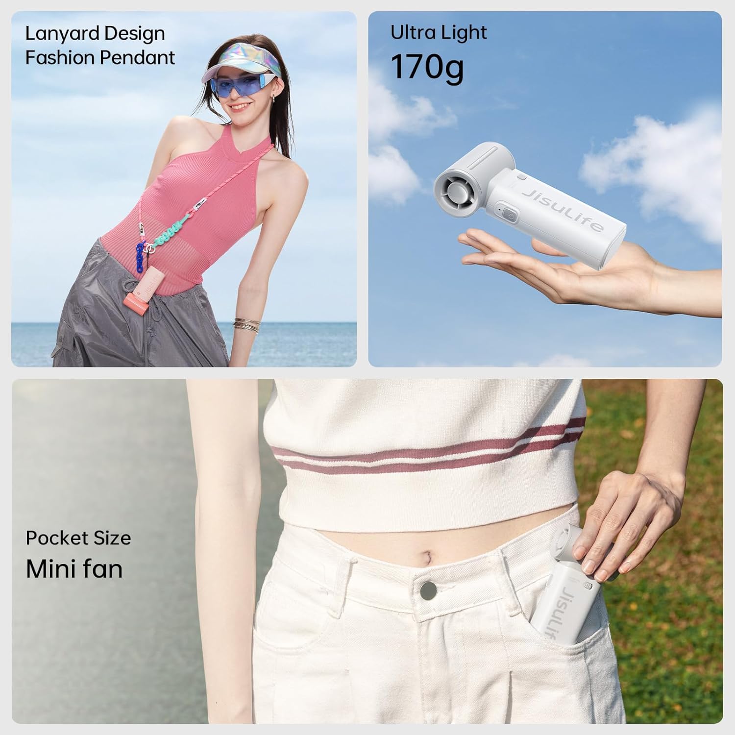- Small In Size, Portable Design: The ultra-small body design and 170g ultra-light small fan allow you to easily put it in your pocket or bag. This portable fan has an lanyard, perfect for travel, camping and outdoor adventures