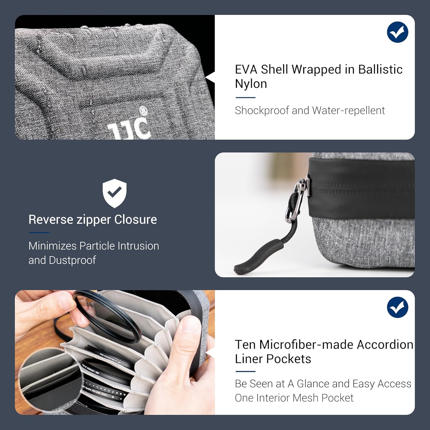 - 【WATER RESISTANT & DUSTPROOF & SHOCKPROOF】:The camera filter case is made of EVA+Polyester,protects your filters from dust, shock, and water splashing.