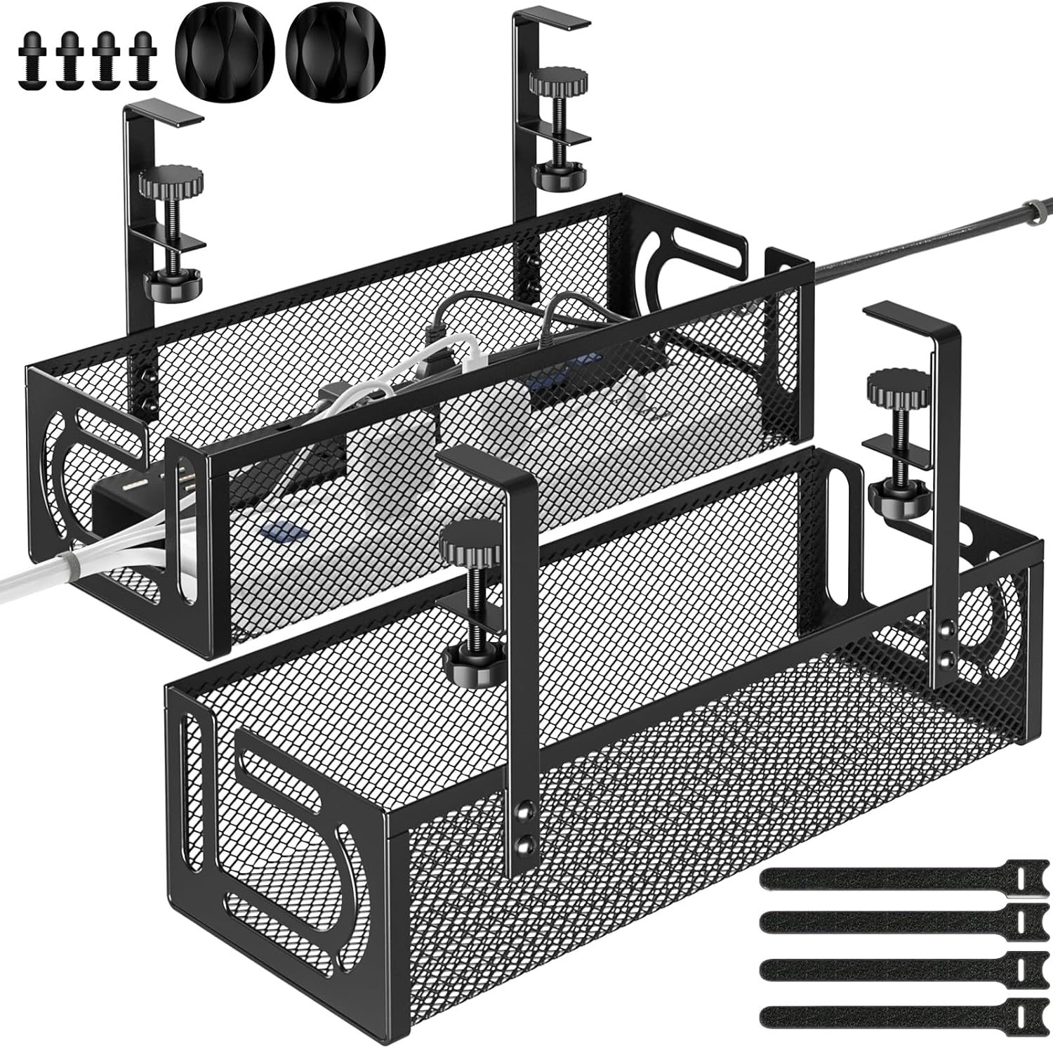 - 【Safety Protection】The cable organizer keeps plugs away from your children and pets, alleviating concerns about tripping hazards. Utilizing the Foellstoe under desk storage saves valuable space and facilitates effortless cable management and wire protection. The mesh design prevents dust accumulation and effectively prevents safety incidents caused by tangled wires.