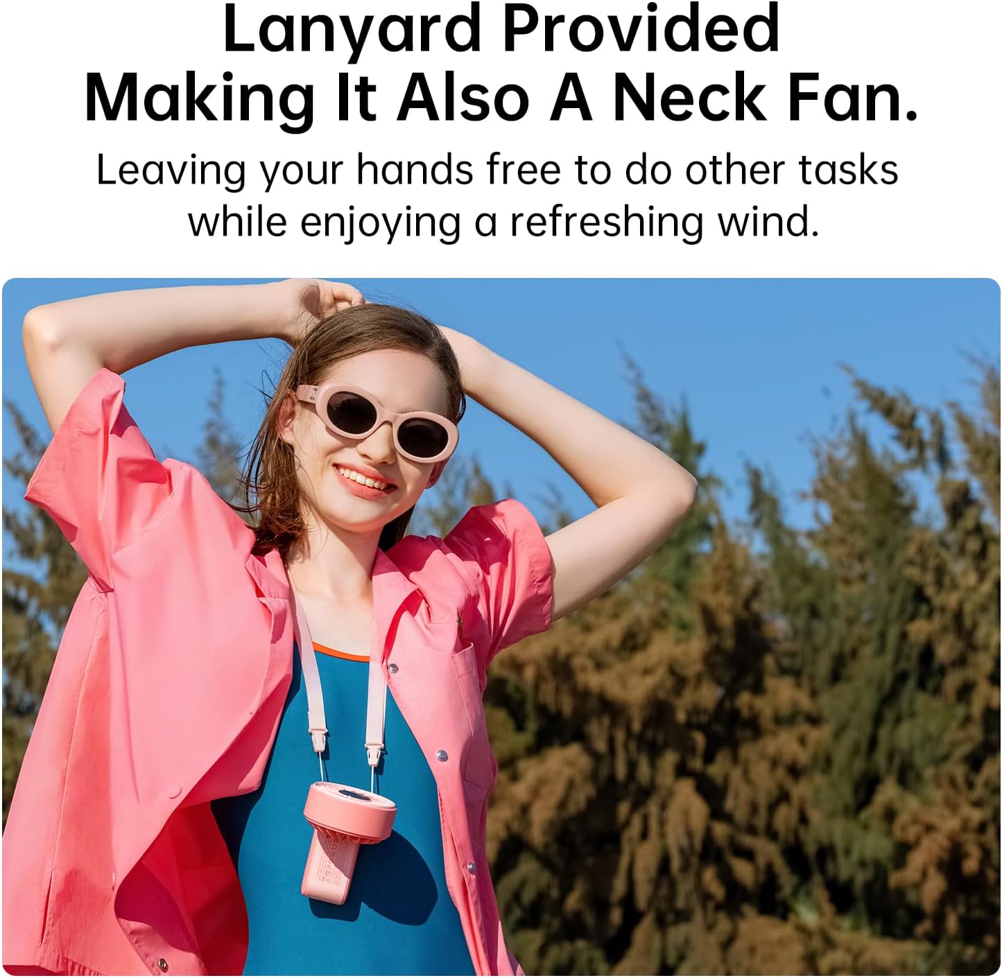 - 3-IN-1 Solution: Hang it around your neck for hands-free cooling or use it on your desk for a focused breeze; Its innovative design allows for handheld use, desktop placement, or worn around the neck, providing a 3-IN-1 solution for beating the heat