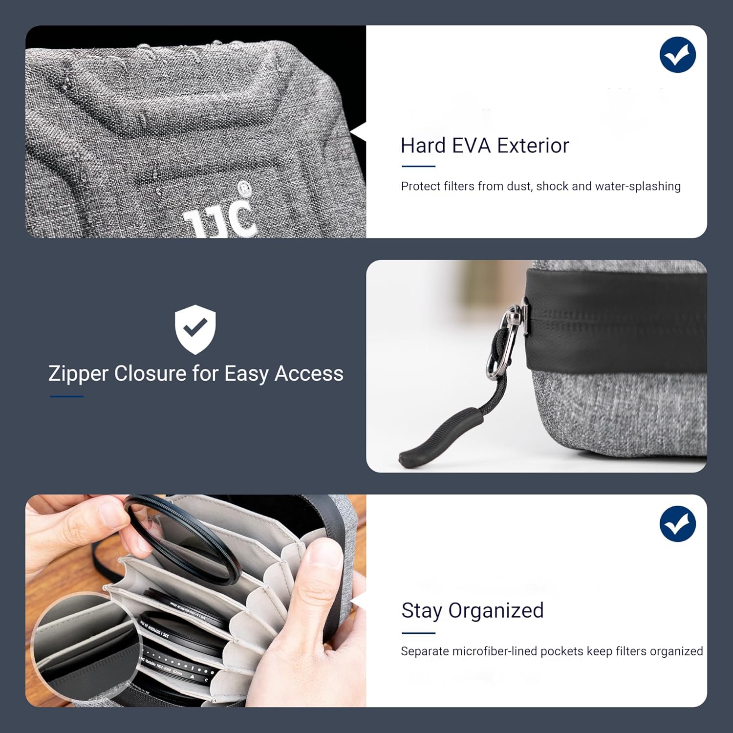 - 【Stay Organized】Filters are placed within one of ten separate microfiber-lined pockets of the filter wallet for better protection. Compact size 4.4x3.8x3.0”, allows you to throw it into your camera bag.