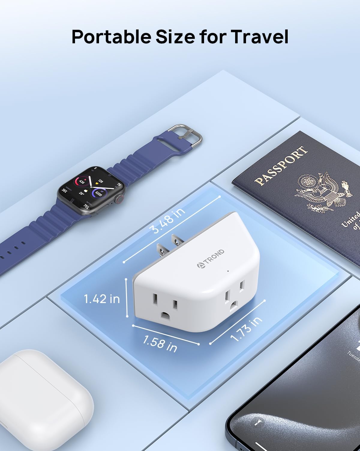 - Small and Mighty: Measuring at just 3.48 x 1.73 x 1.42 inches, the compact size of this outlet extender is perfect for your business trips or travels. It is designed to save space, making it especially suitable for tight spaces such as behind the couch or furniture