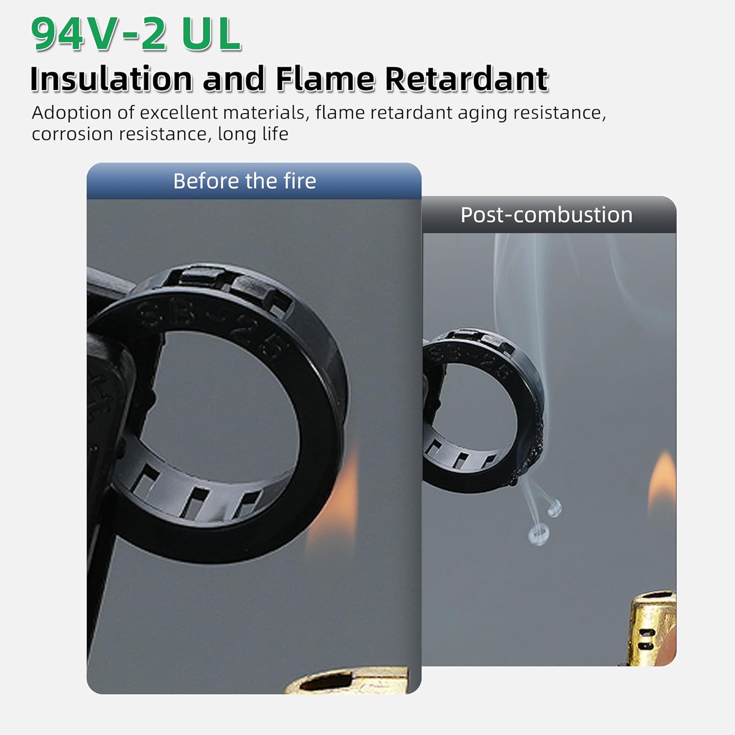 - GREAT FUNCTION: Our knockout insulating bushing converts raw edged knockout holes to smooth, neat, insulated holes and absorbs vibration and cushions; Our cable hose bushing grommet can also fix cables and prevent abrasion or scratches to improve safety