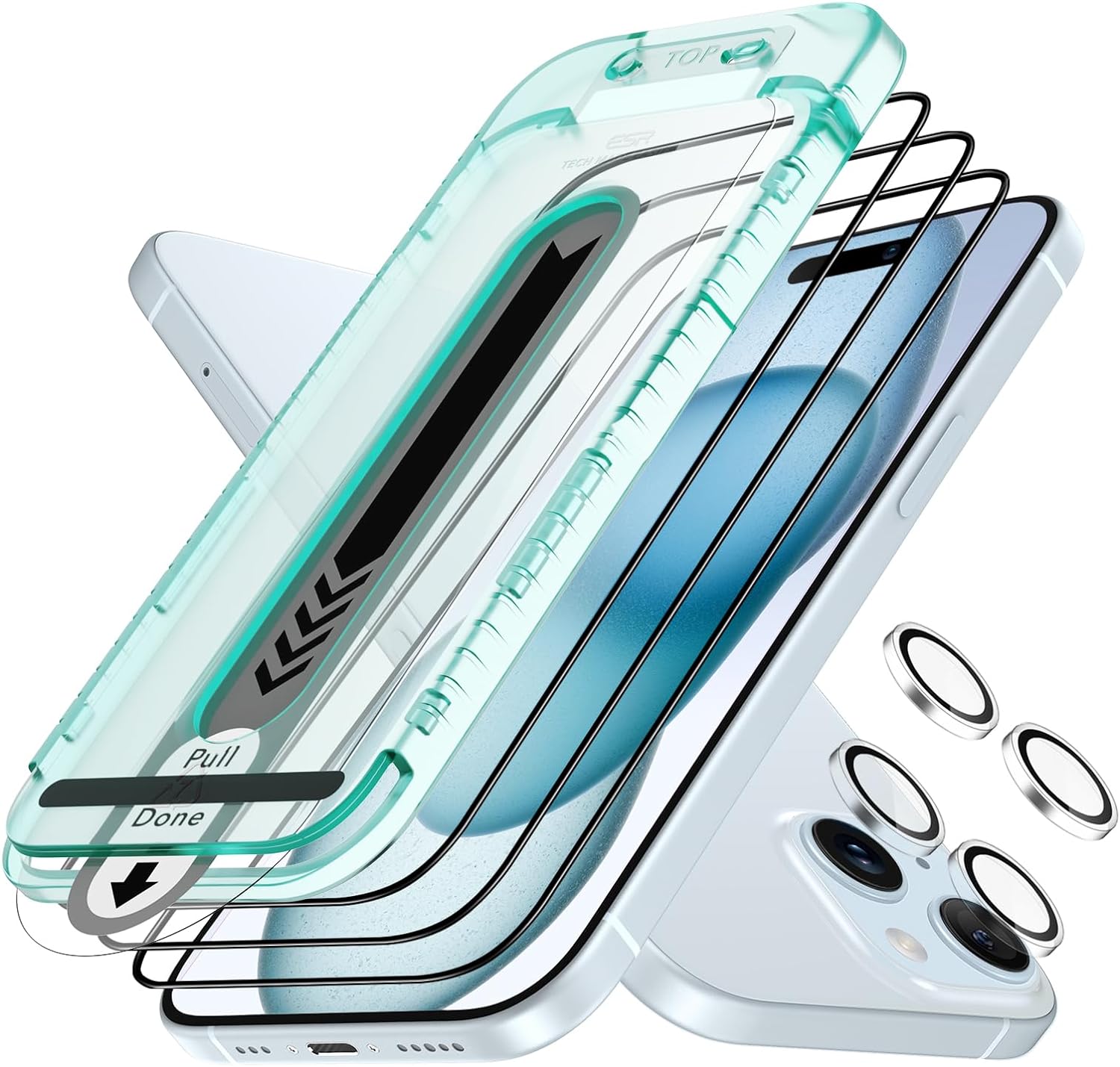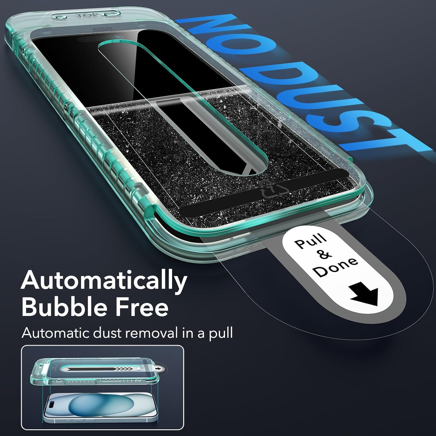 ESR 3+2 Pack for iPhone 15 Plus Screen Protector, [9H Hardness] [Military Grade Shatterproof] Full Coverage Ultra-tough Tempered Glass Film with Flawless Fit Tray, 2 Set of Camera Lens Protector