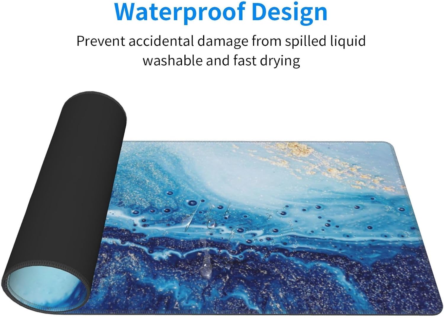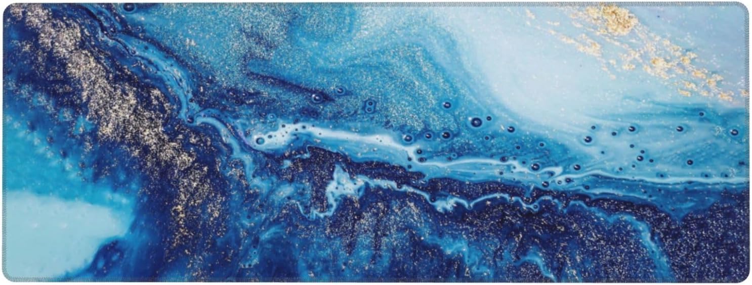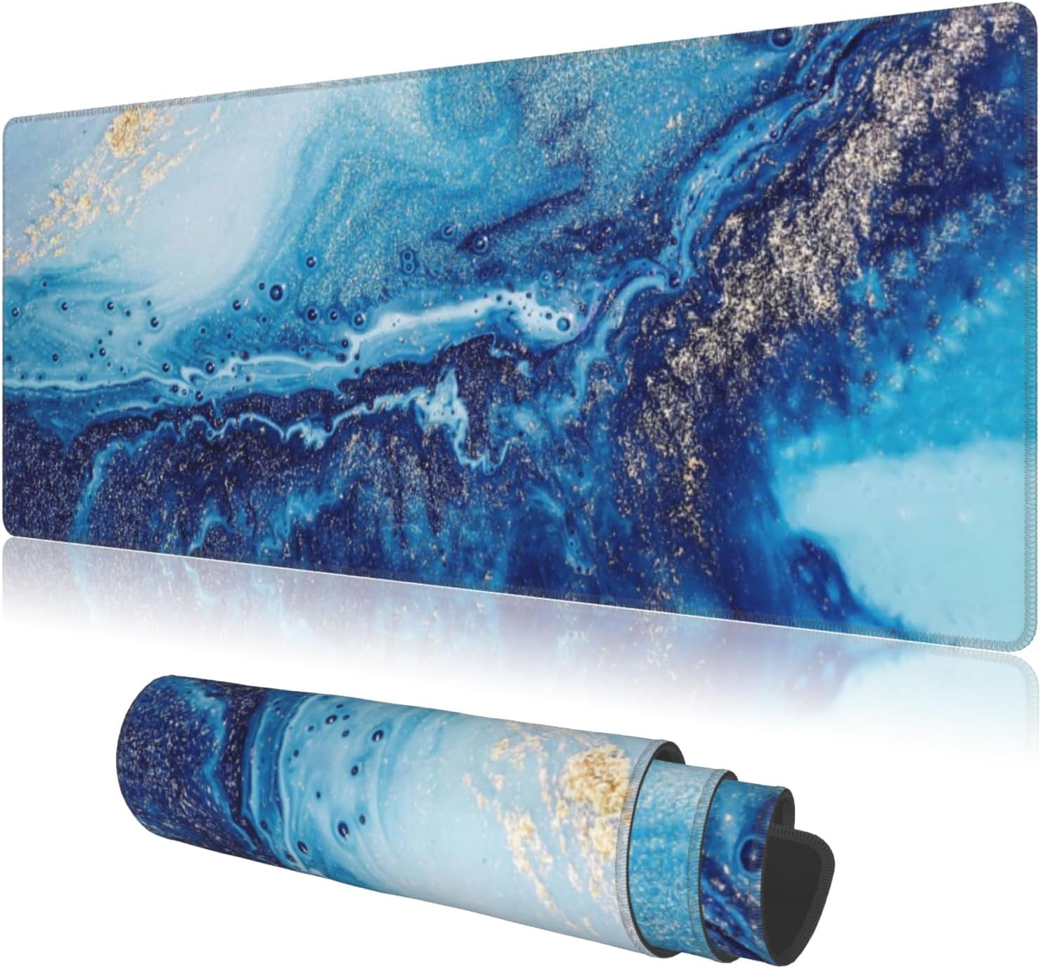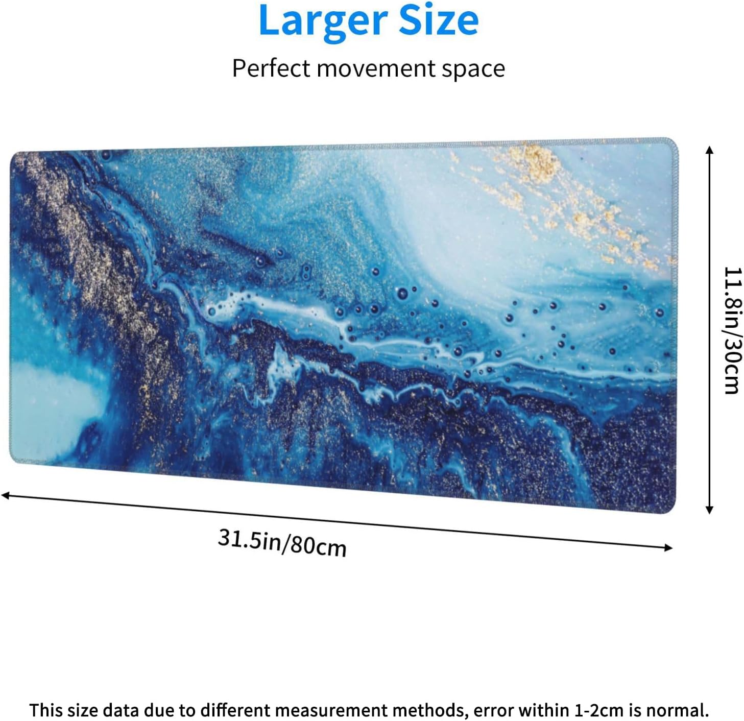 Mouse Pads Navy Blue Gold Modern Abstract Marble Large Mouse Pad, Gaming Mousepad, Keyboard and Mouse Pad with Stitched Edges,PC Desk Mat for Game,Work,Office(31.5"*11.8")