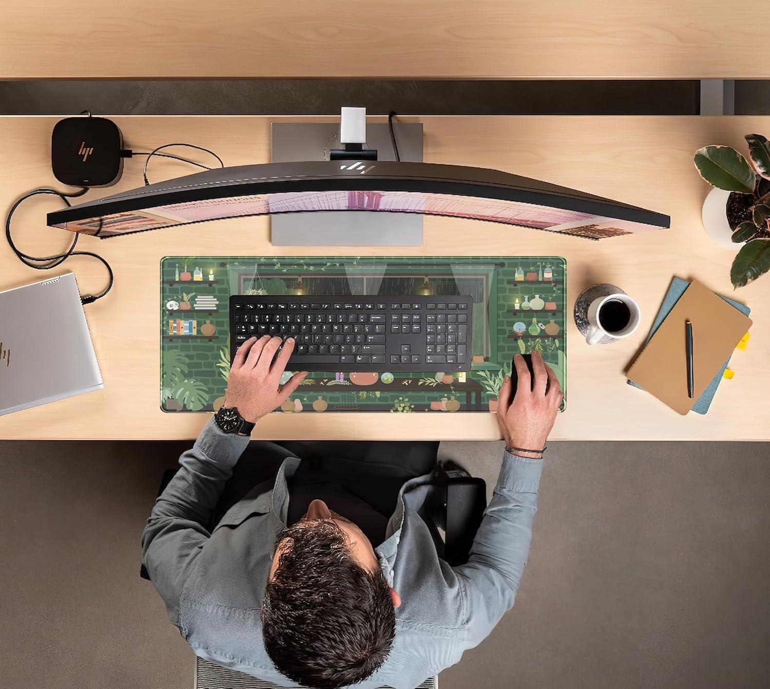 - 【Non-Skid Rubber Base】The bottom of this full desktop mouse pad is made of natural rubber. It has good stability to ensure that the desktop pad stays in place, while having softness to make the wrist less fatigued.