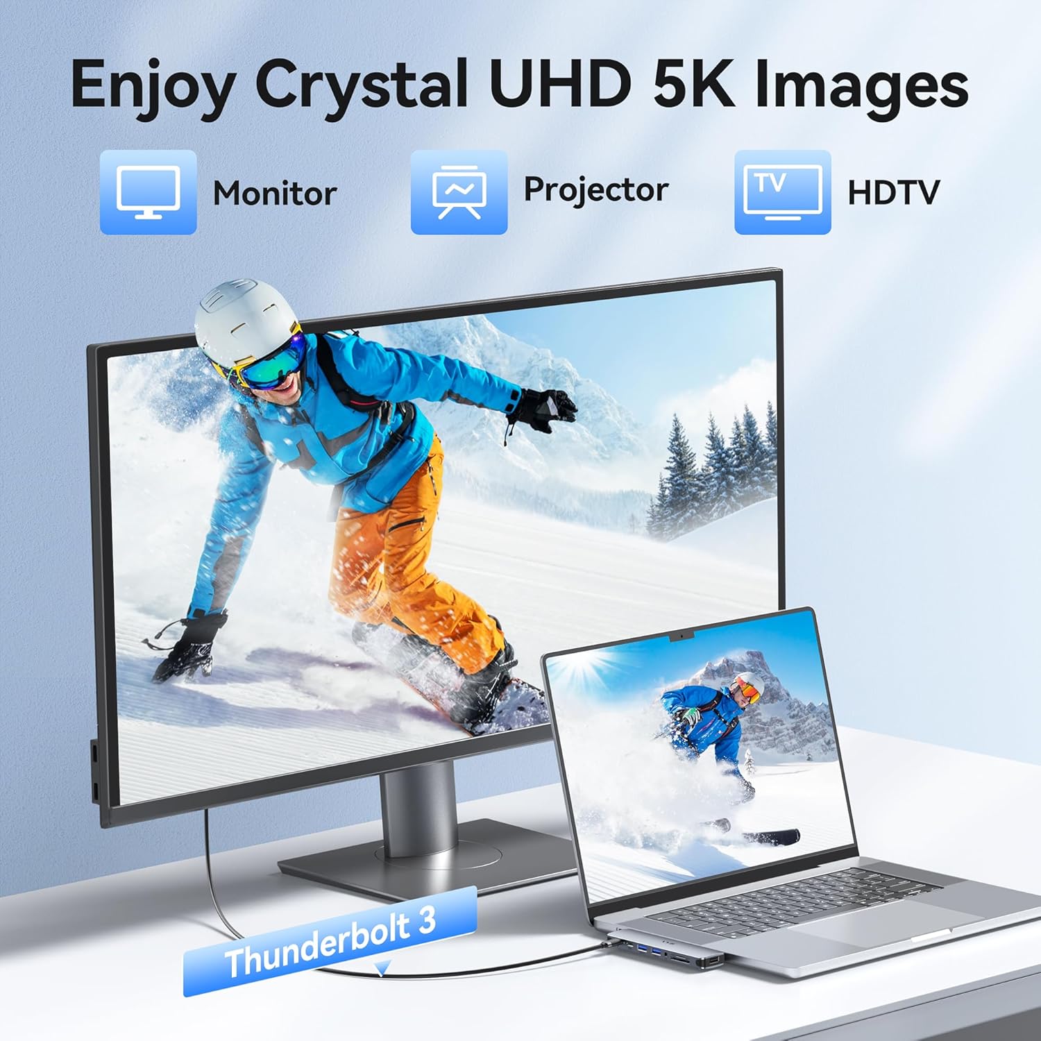 - Multi-Function Macbook Adapter Multiport: MacBook pro hub usb c dongle equipped with thunderbolt 3 port, allows charging your laptop up to 100W of power input, 87W of safe power output, support video output up to 5K or 2x4K@60Hz, and data transfer speeds up to 40Gb/s