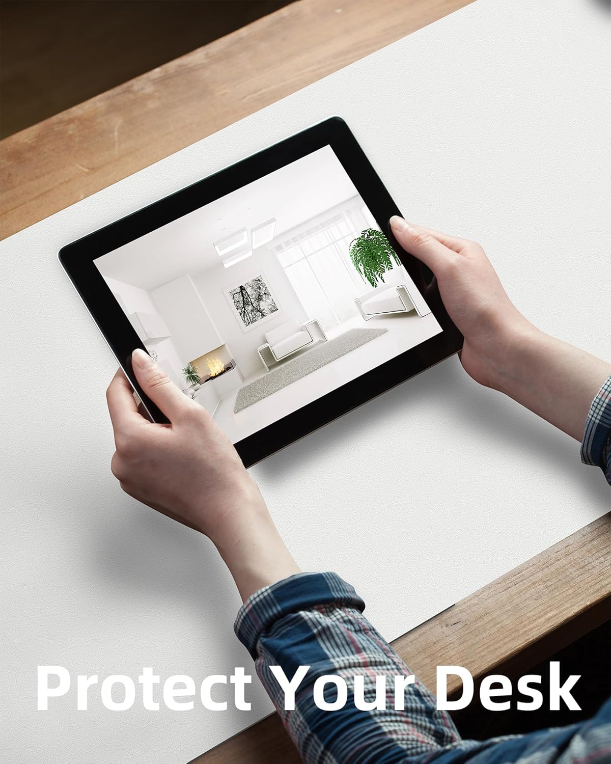 Large Desk Mat,55" x 17"Leather Desk Pad Protector,Large Mouse Pad,Office Desk Mat, Non-Slip PU Leather Desk Blotter, Laptop Desk Pad,Waterproof Desk Writing Pad for Office/Home/Decor(Ivory White)