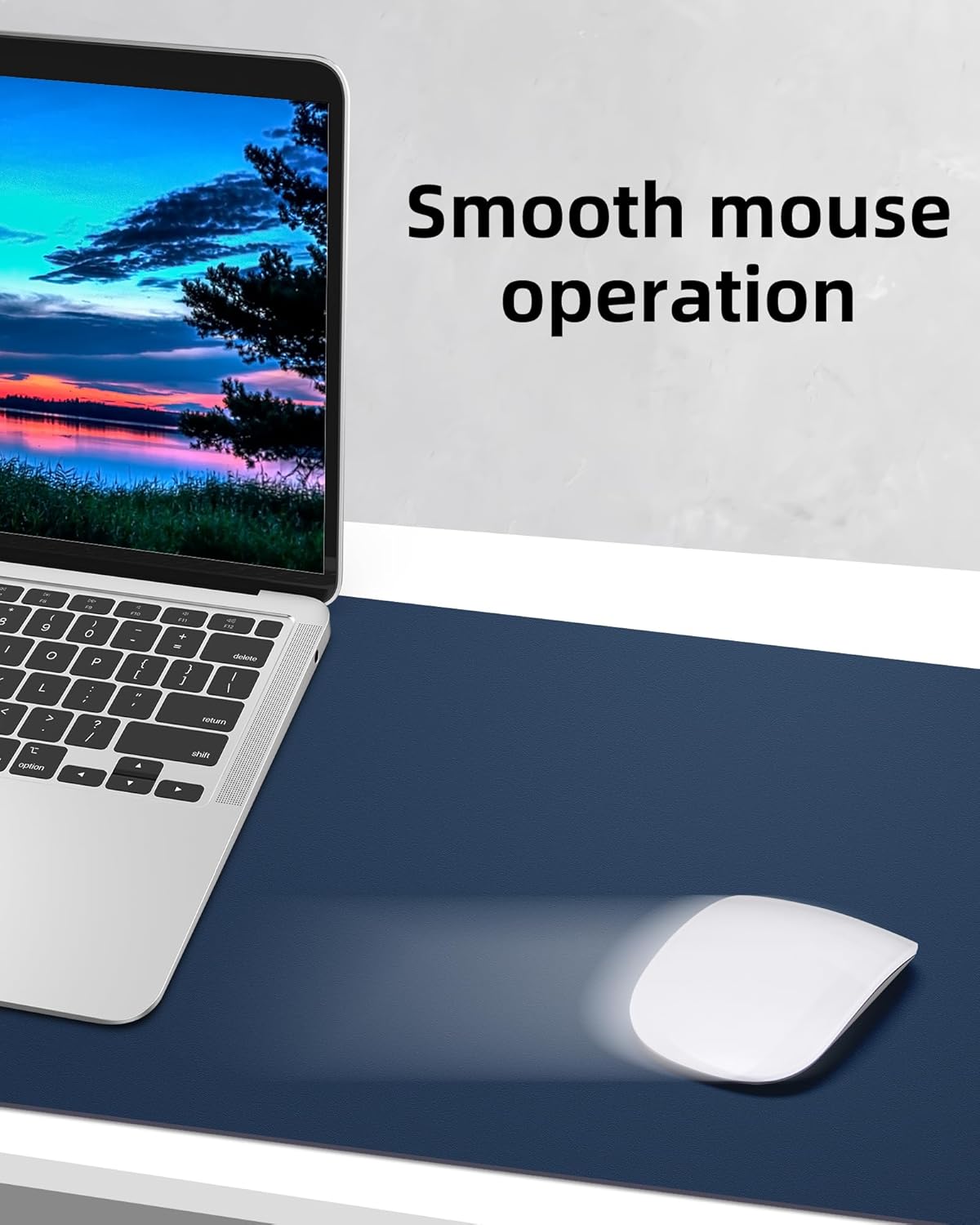 AFIING Leather Desk Pad Protector, Mouse Pad, Office Desk Mat, Non-Slip PU Leather Desk Blotter, Large Desk Mat, Waterproof Keyboard Mat for Office/Home/Decor (Midnight Blue, 48" x 17")