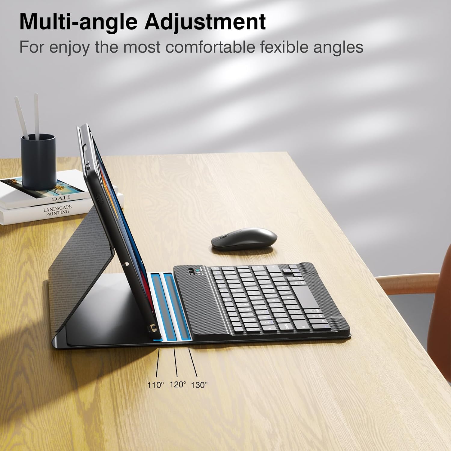 - ⌨️【Wireless Detachable Keyboard】 Equipped with a magnetic, detachable, ultra-thin (6.5 mm), lightweight Bluetooth keyboard with a 10-meter range, it is perfect for school, office, travel, and business use. The larger keycap design, with a 30% increase in keycap area, offers a better typing experience, making your work easier.