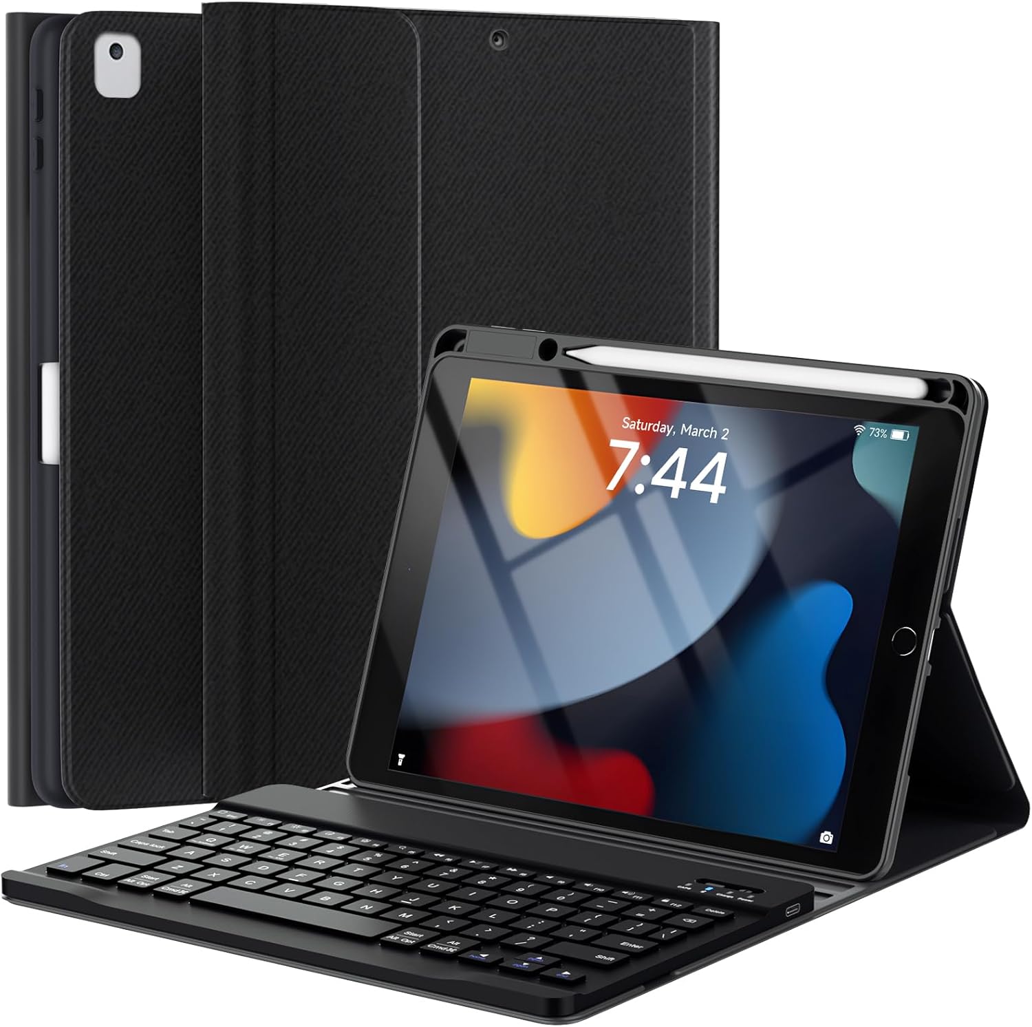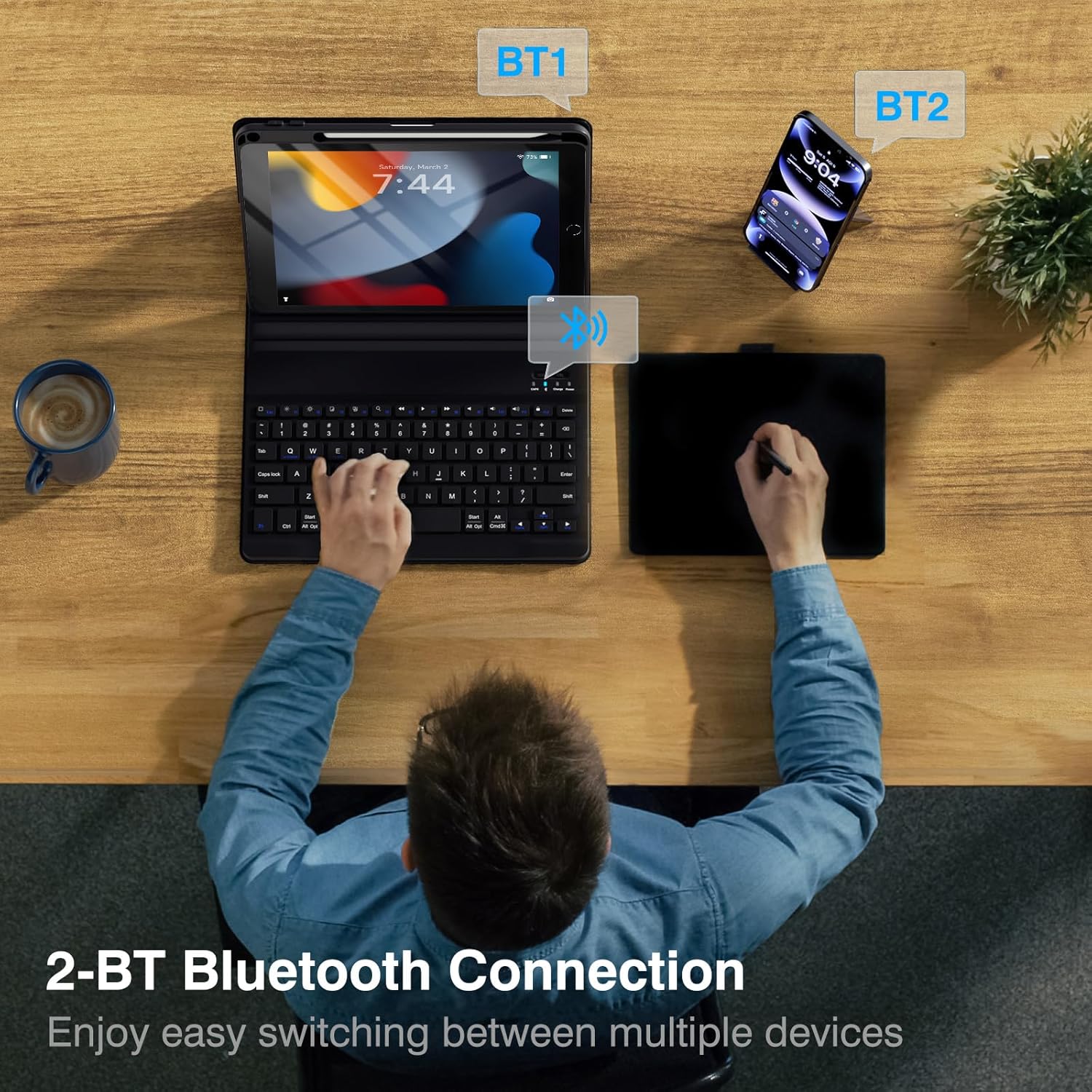 - ⌨️【Portable and Multifunctional】 The iPad 9th Generation Case with Keyboard makes your iPad a stylish and portable work companion. It's not just a durable folio case but also comes with a magnetic, detachable, ultra-thin Bluetooth keyboard, turn your iPad into a laptop in one second, llowing you to operate with ease anytime, anywhere, and enjoy convenient office productivity!