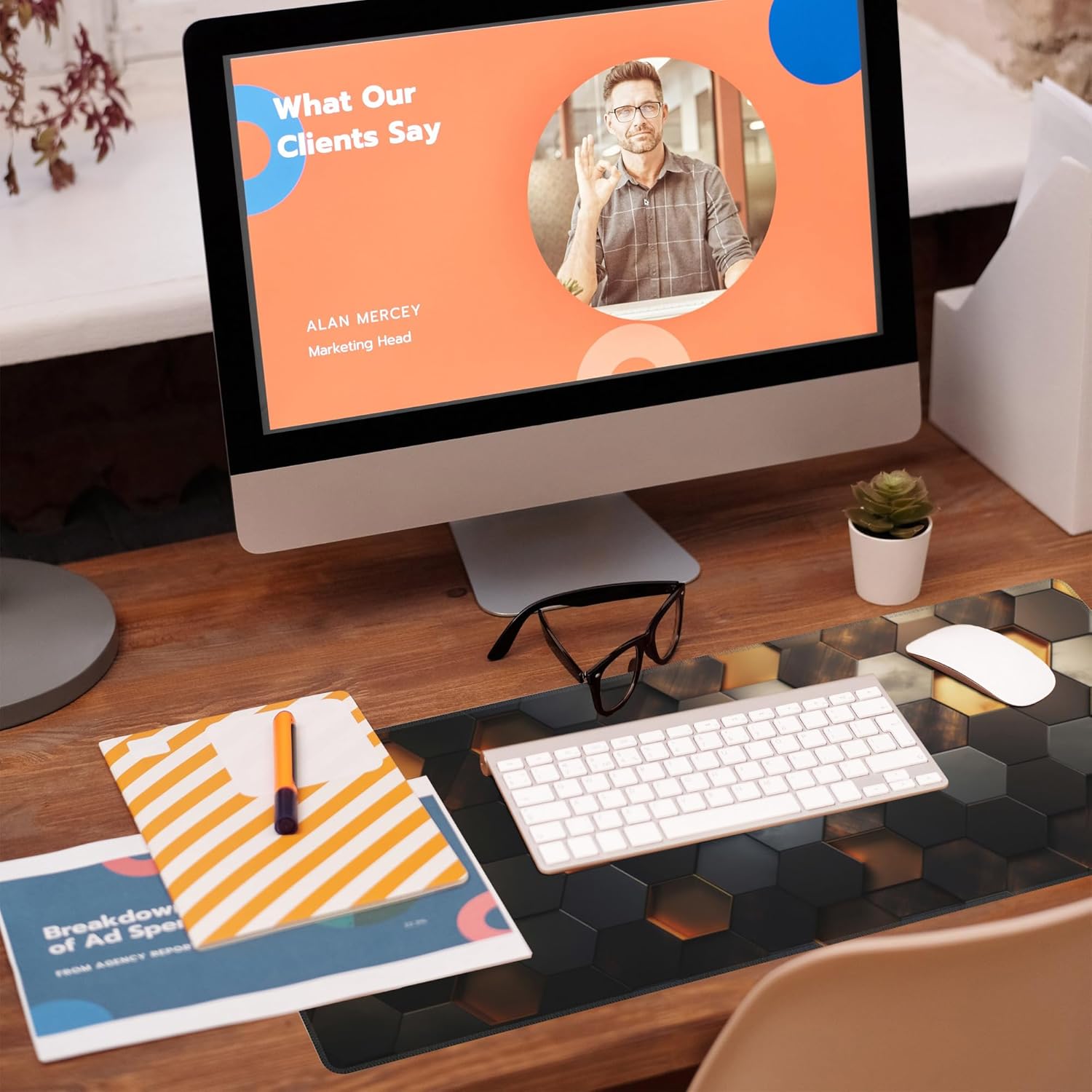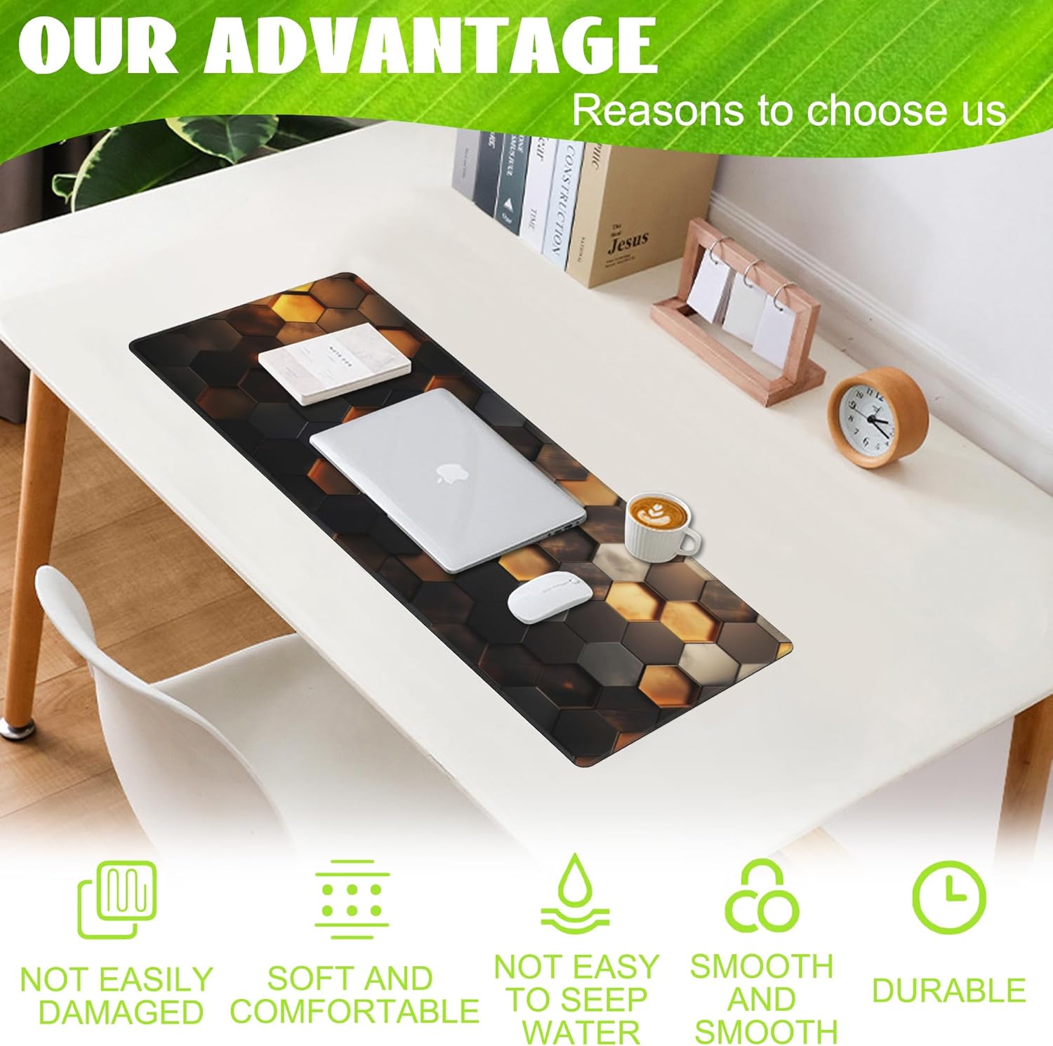 Desk Mat,Golden Honeycomb Technology Desk Pad,Honeycomb Technology Large Gaming Mouse Pad for Desk,Extended Big Computer Keyboard Mouse Pad with Non-Slip Base and Stitched Edge,31.5"x11.8"