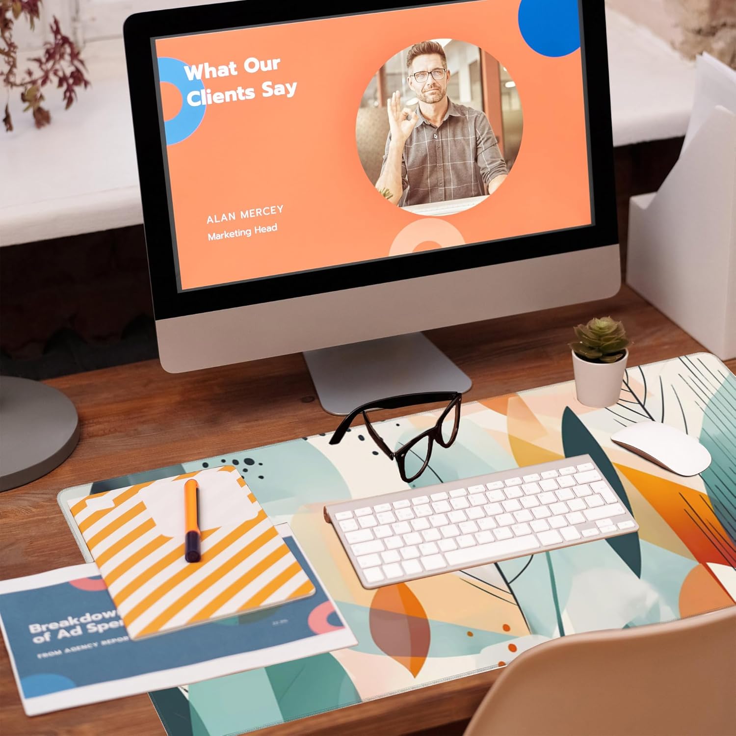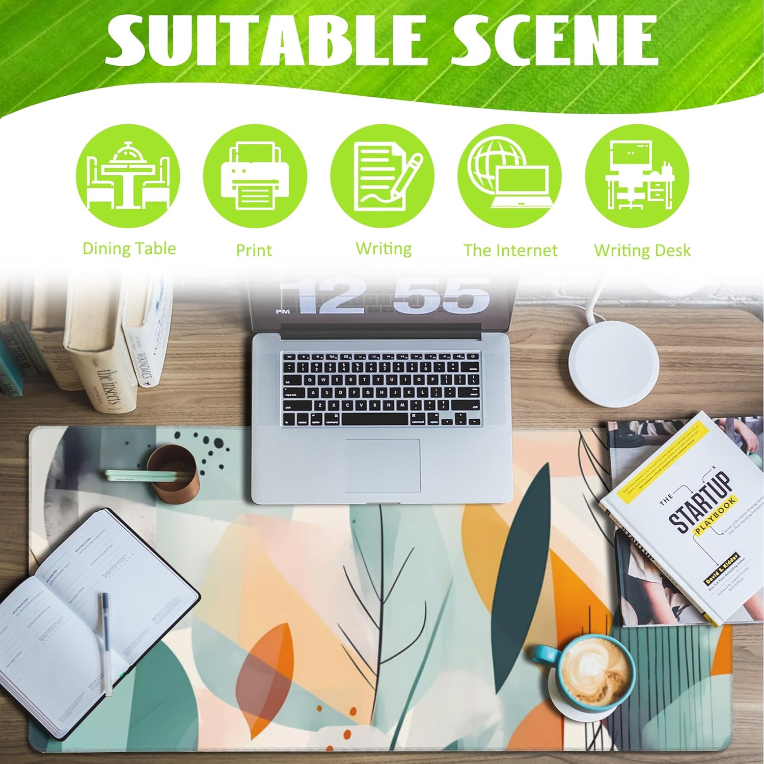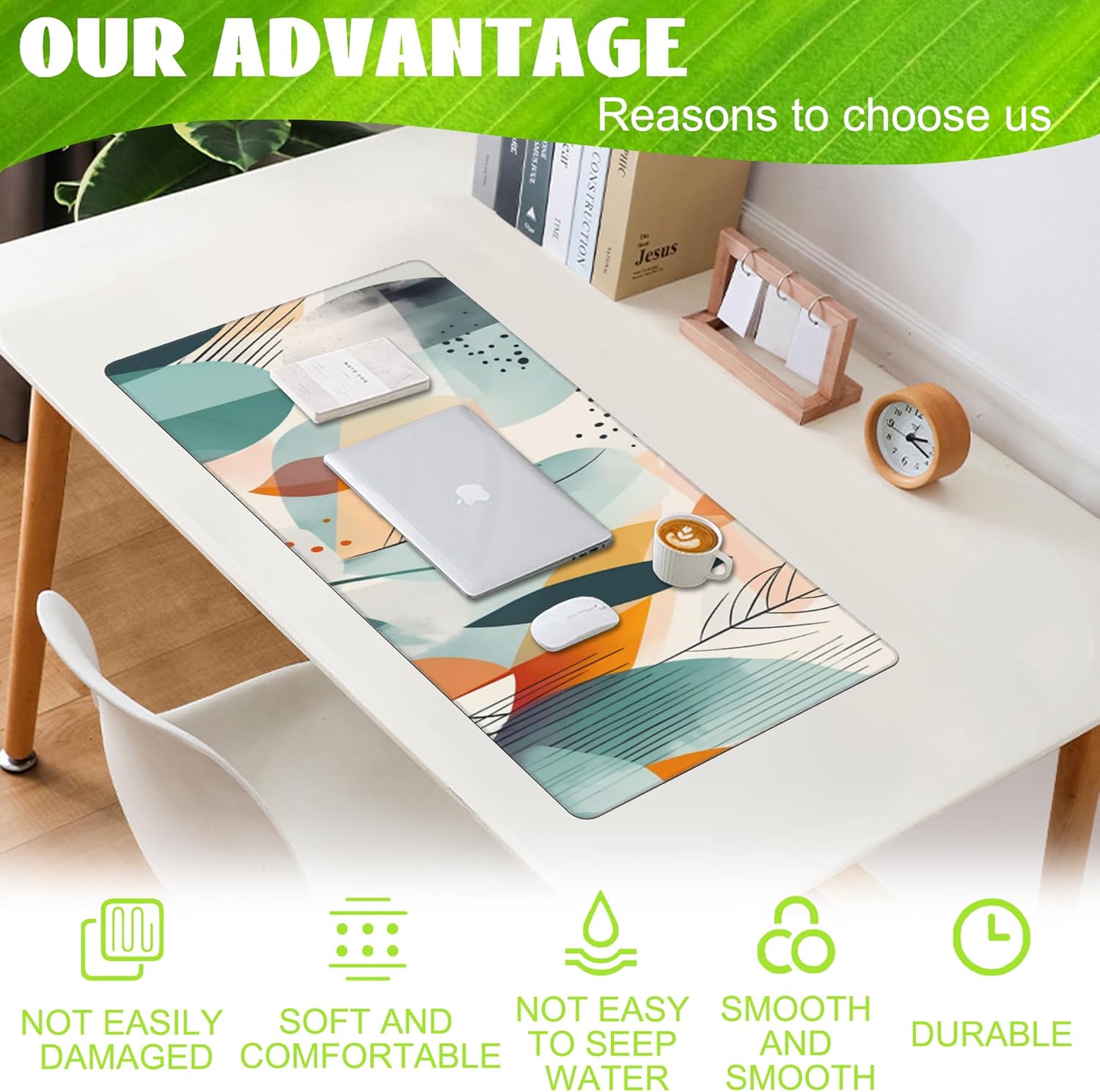 Desk Pad,Abstract Colorful Leaves Desk Mat,Abstract Line Art Large Gaming Mouse Pad for Desk,Extended Big Computer Keyboard Mouse Pad with Non-Slip Base and Stitched Edge,35.4"x15.7"