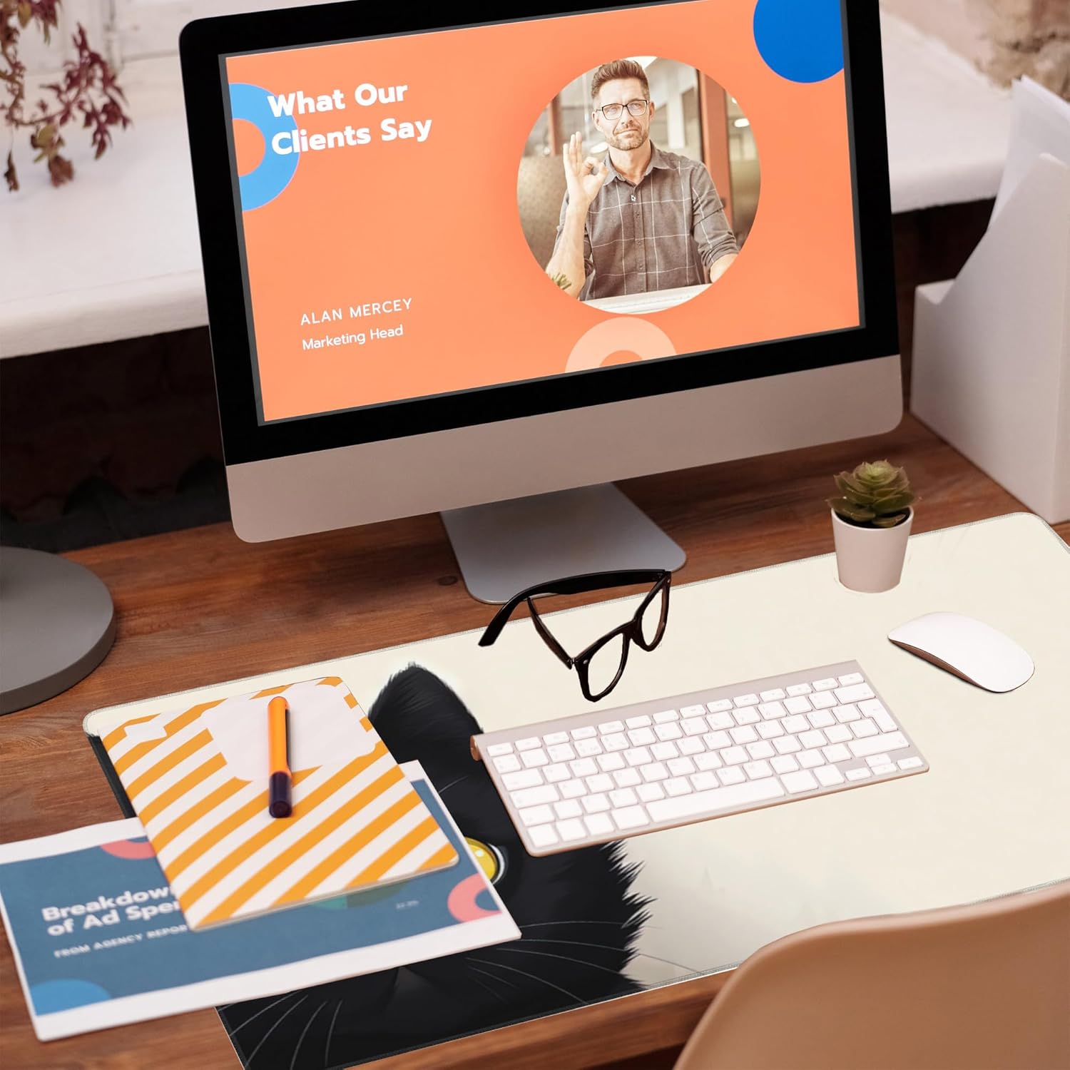 Desk Pad,Black Cat Desk Mat,Cute Cat Large Gaming Mouse Pad for Desk,Extended Big Computer Keyboard Mouse Pad with Non-Slip Base and Stitched Edge,35.4"x15.7"