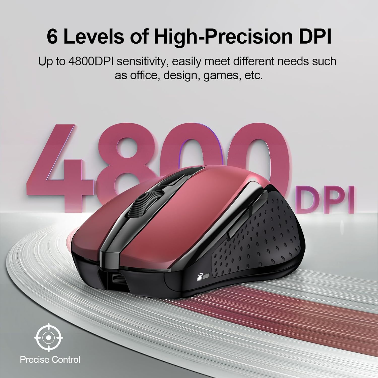 - Advanced Optical Tracking - Featuring 6-level adjustable DPI (800/1200/1600/2400/3200/4800), this mouse provides high-performance precision and smart cursor control on most surfaces.