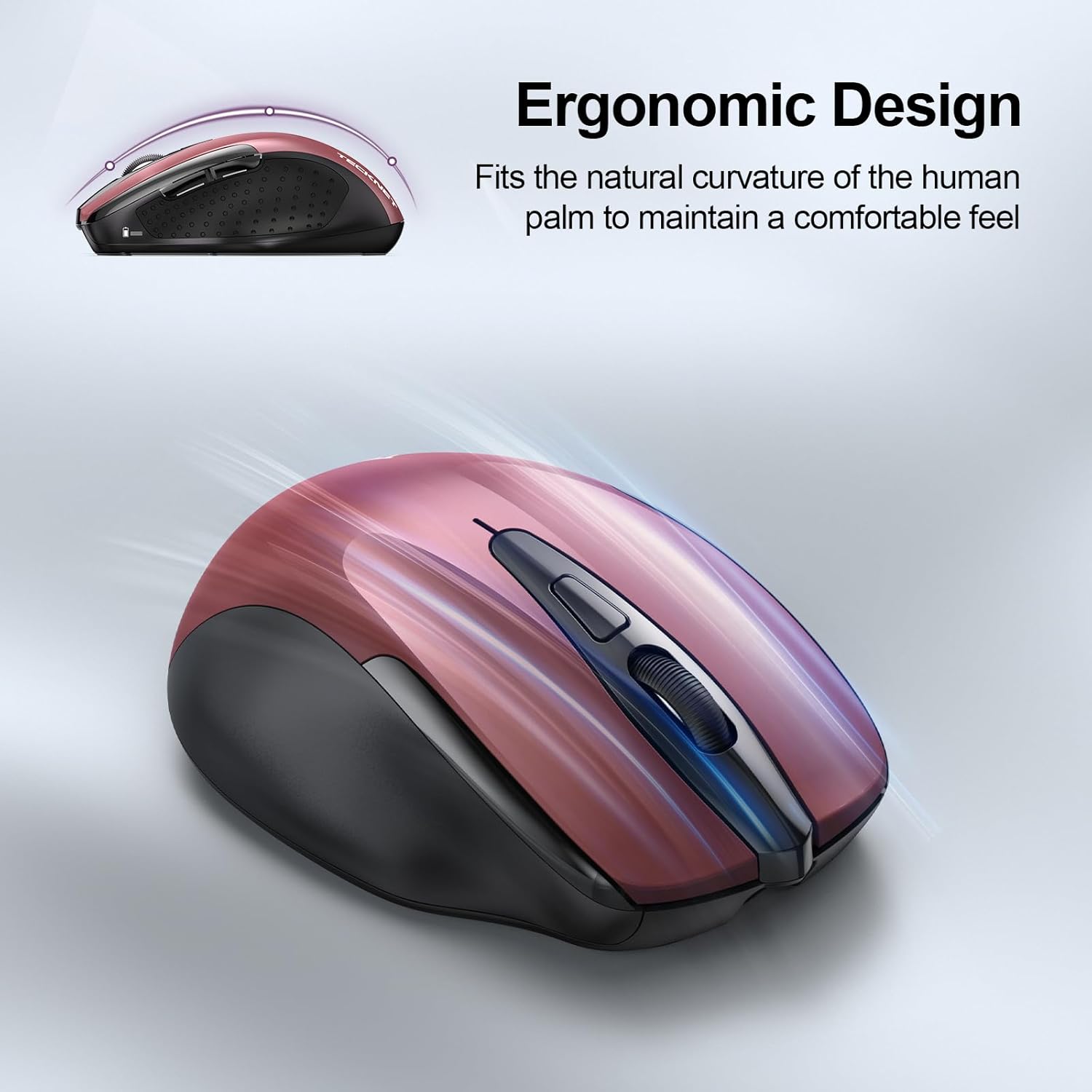 TECKNET Rechargeable Wireless Mouse, 2.4G Silent Mouse, Quiet Click, 6 Adjustable 4800 DPI, Cordless Computer Mouse, Ergonomic Mouse for Laptop, 6 Buttons USB Mouse for Chromebook, Ergo Grip - Red