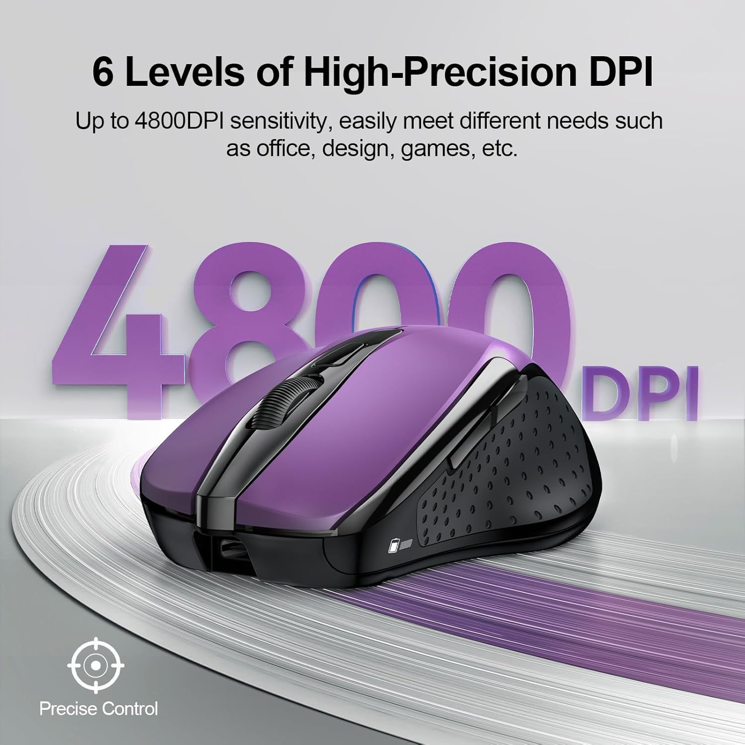 TECKNET Rechargeable Wireless Mouse,USB-A Silent Mouse, Quiet Click, 6 Adjustable 4800 DPI, Cordless Computer Mouse, Ergonomic Mouse for Laptop, 6 Buttons 2.4G Mouse for Chromebook, Ergo Grip - Purple