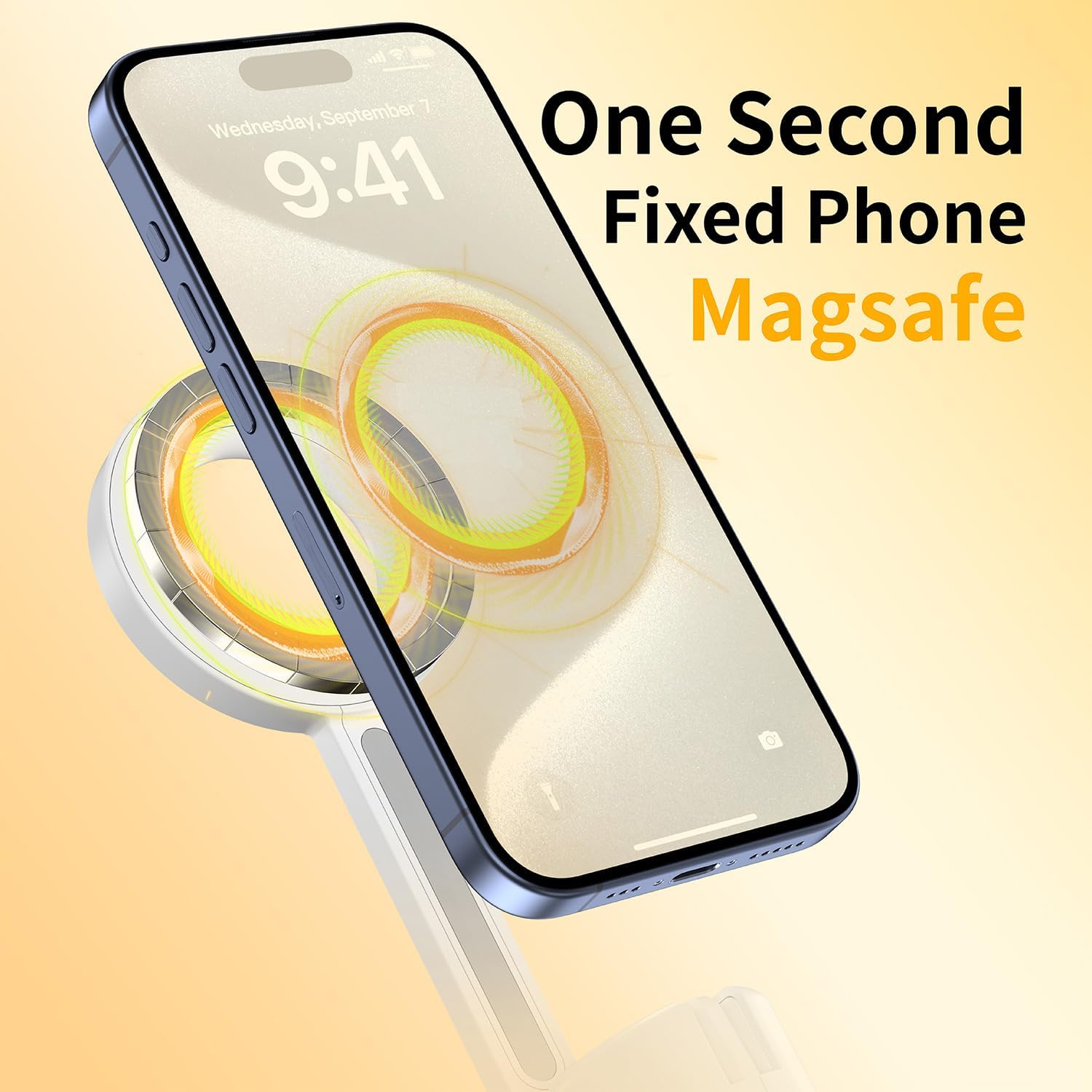 - 【Super strong magnetic adsorption force】This selfie stick features upgraded magnetic technology design,compatible with iPhone 12/13/14/15 series,Magsafe Case and Other Phones with Metal Ring.Just a gentle touch and your phone securely locks in place, making it convenient and swift.